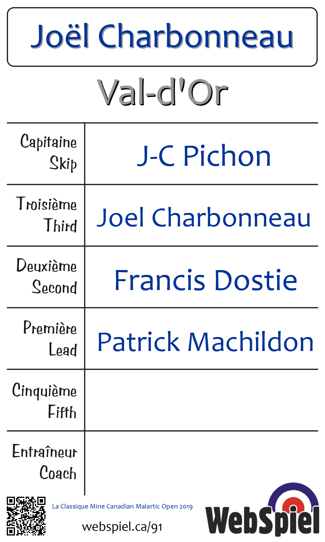 Friday, February 15th, 2019, at 7:00pm EST Club de curling du Belvédère, Sheet 3 · C, Winner › A21, Loser › C06 | |||||||||