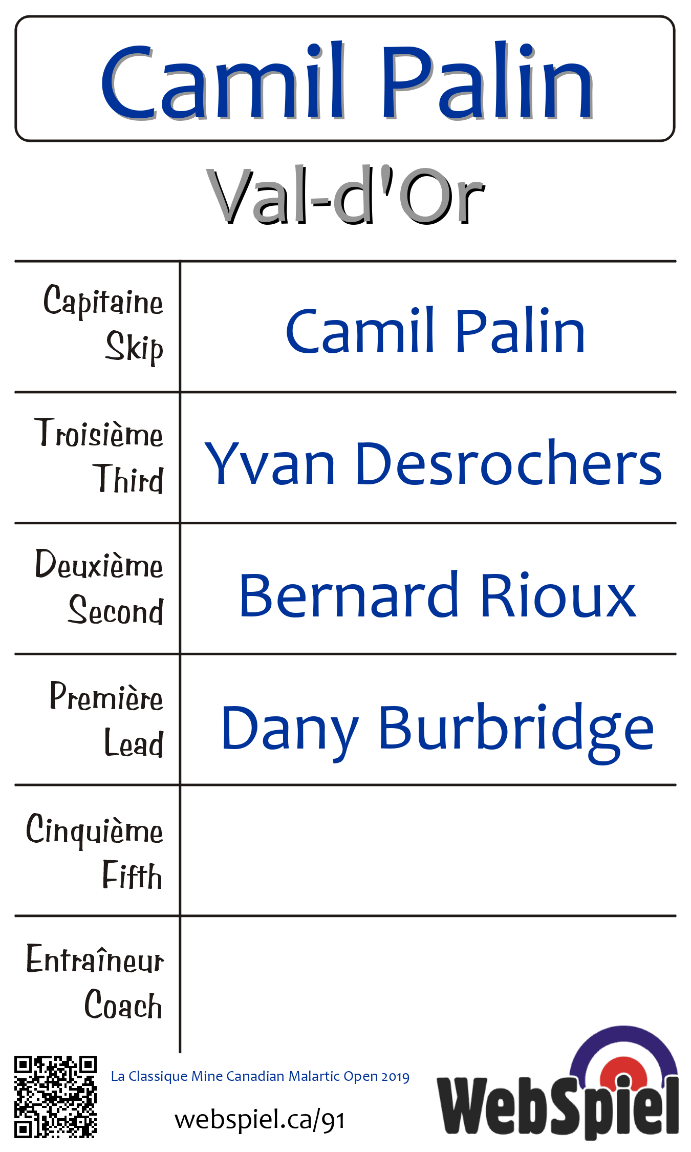 Saturday, February 16th, 2019, at 6:00pm EST Club de curling du Belvédère, Sheet 2 · B, Winner › C16, Loser › OUT | |||||||||