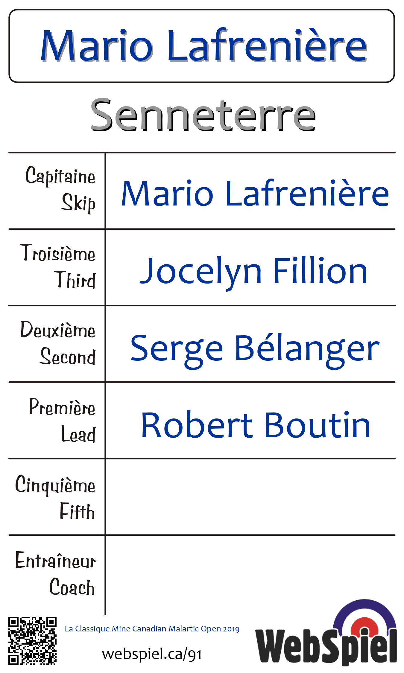 Saturday, February 16th, 2019, at 2:00pm EST Club de curling du Belvédère, Sheet 3 · C, Winner › A32, Loser › B03 | |||||||||