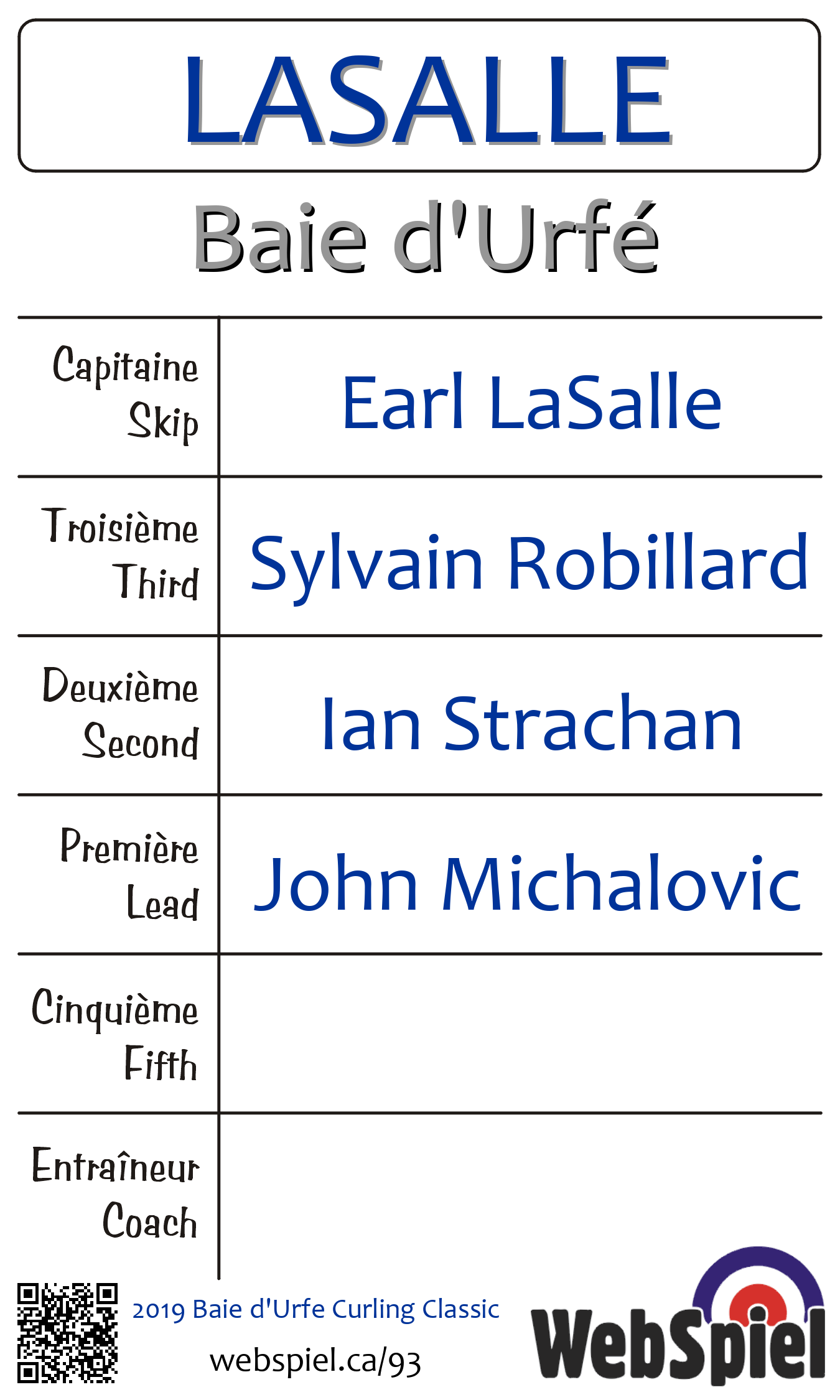Saturday, October 26th, 2019, at 11:30am EDT Baie d'Urfé Curling Club, Sheet 192 | |||||||||
