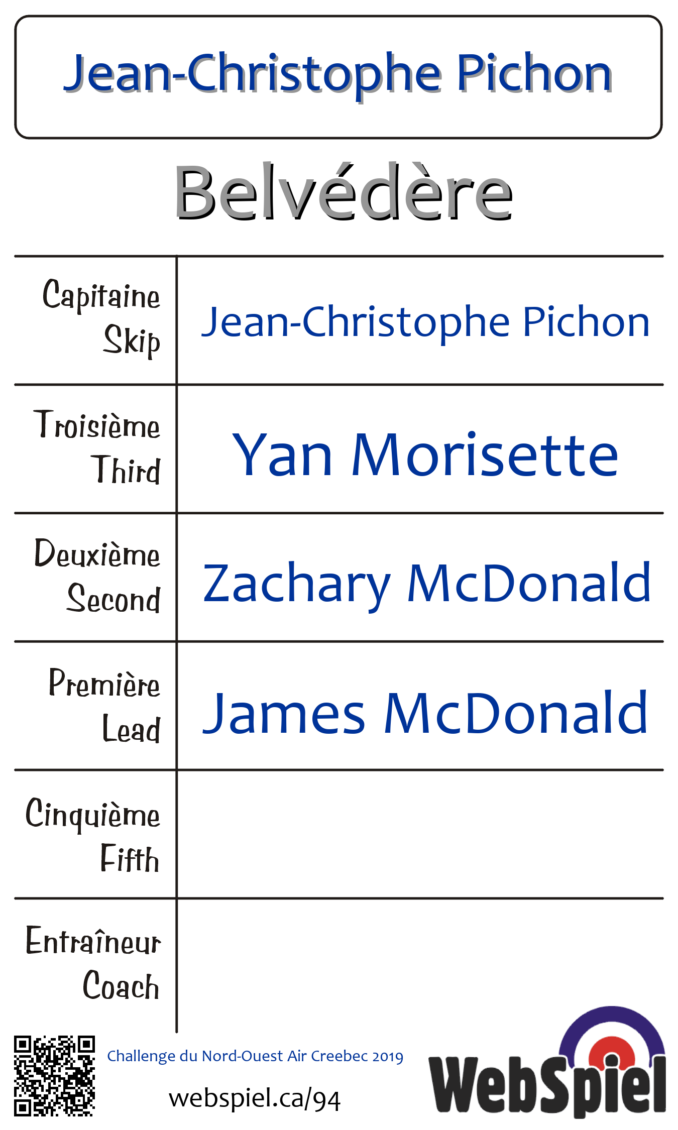 Saturday, November 2nd, 2019, at 6:30pm EDT Club de curling du Belvédère, Sheet 3 · C | |||||||||