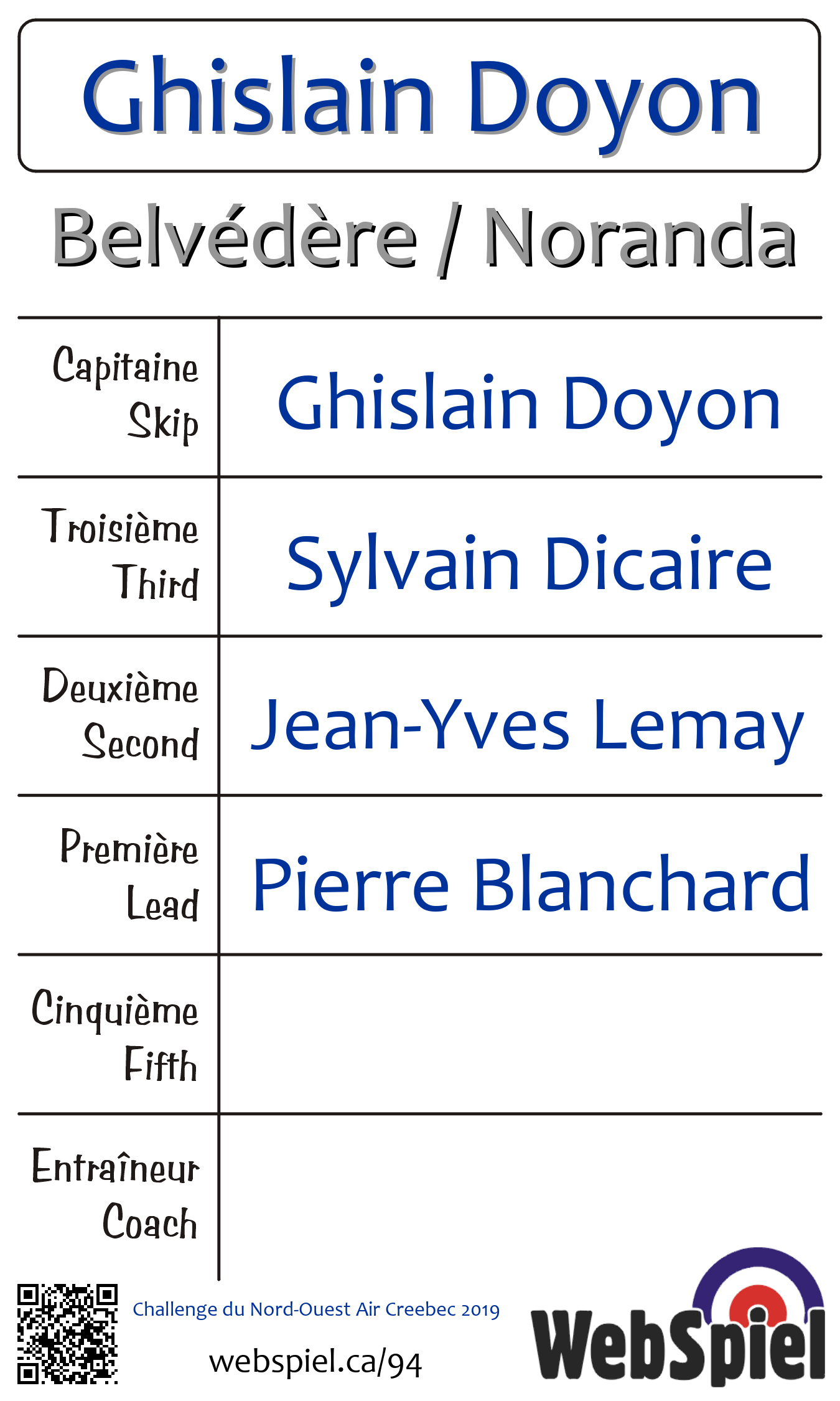 Saturday, November 2nd, 2019, at 10:15am EDT Club de curling du Belvédère, Sheet 2 · B | |||||||||