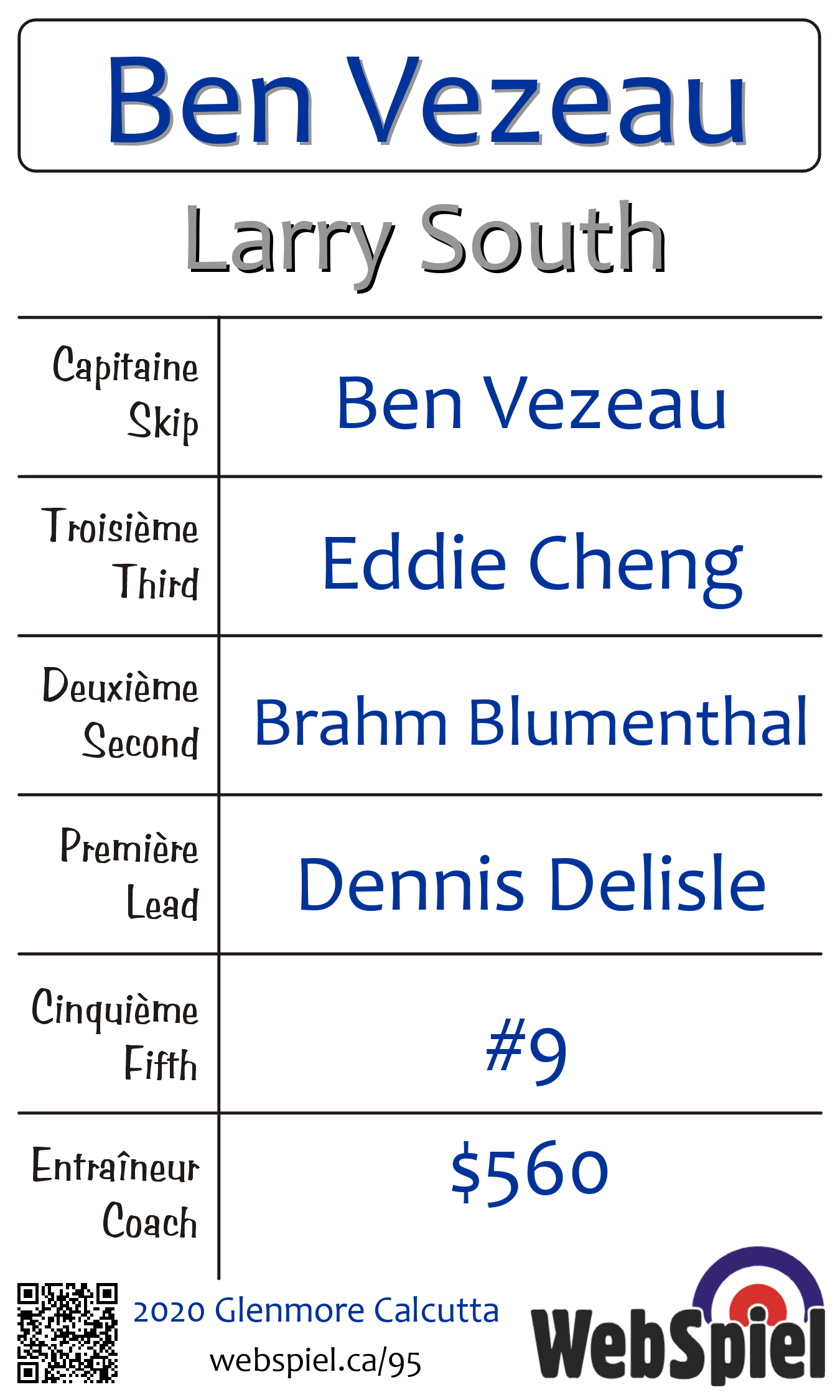 | Team | 5 - Ben Vezeau |