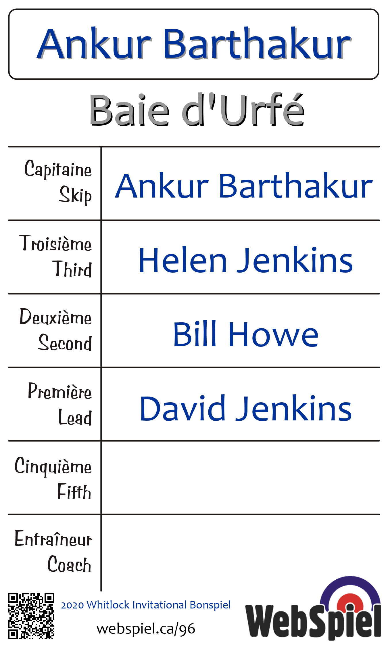 Friday, January 10th, 2020, at 3:00pm EST Club de curling Hudson Whitlock, Sheet 1, Winner › C06, Loser › D03 | |||||||||