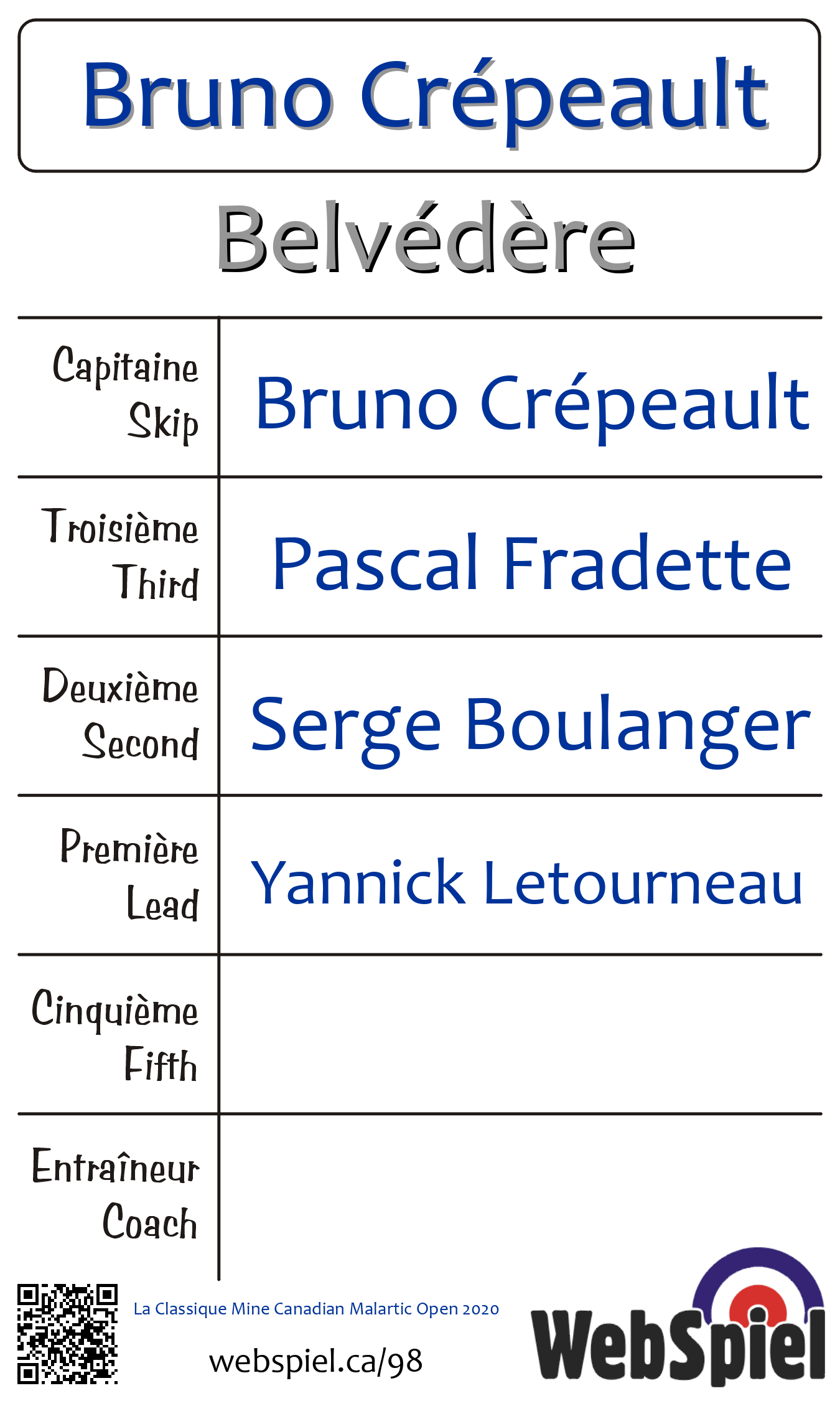 Completed. La Classique Mine Canadian Malartic Open 2020 · Draw B05