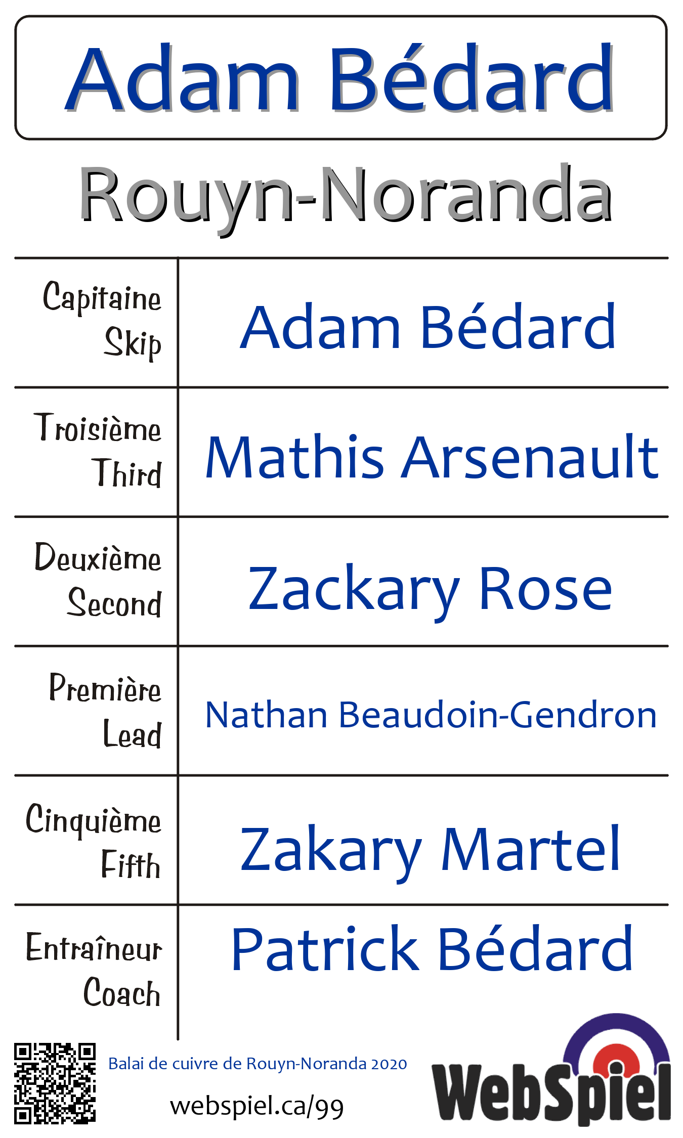Friday, March 13th, 2020, at 5:00pm EDT Club de curling Noranda, Sheet 1 · A, Winner › A15, Loser › C01 | |||||||||