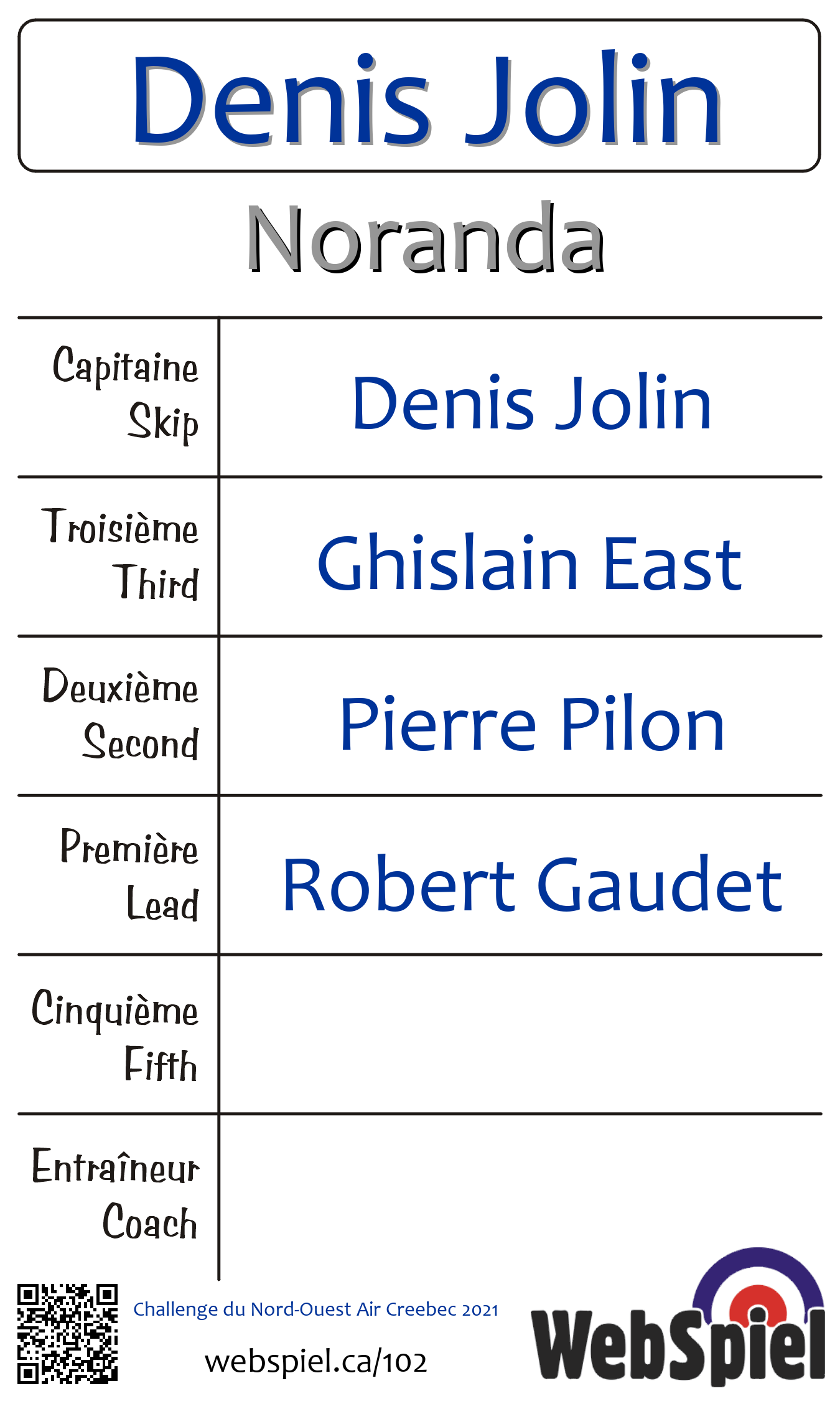 Nom d'équipeClub / RegionFiche