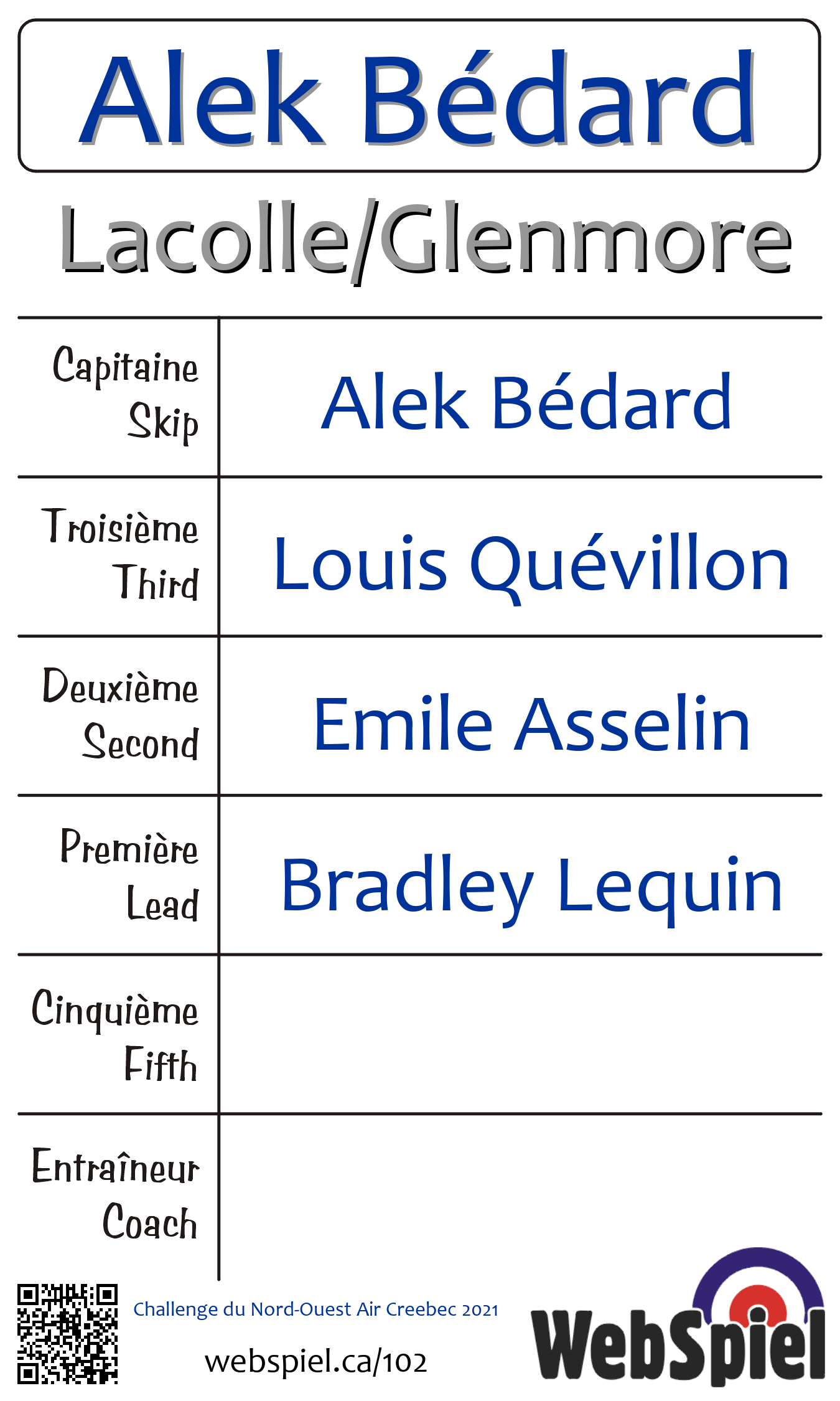 Samedi le 30 octobre 2021, à 18h30 EDT Club de curling du Belvédère, Glace 4 · D | |||||||||