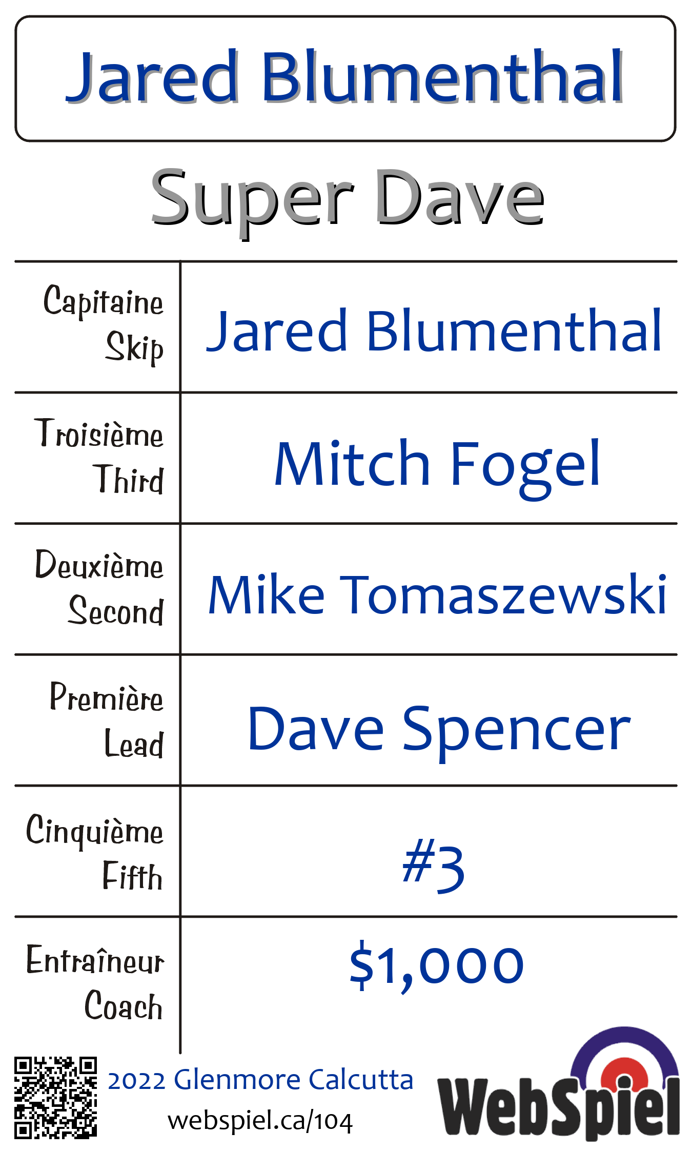 Vendredi le 25 mars 2022, à 21h00 EDT Glenmore Curling Club, Glace 214 · D, Gagnant › D04, Perdant › Éliminé | |||||||||