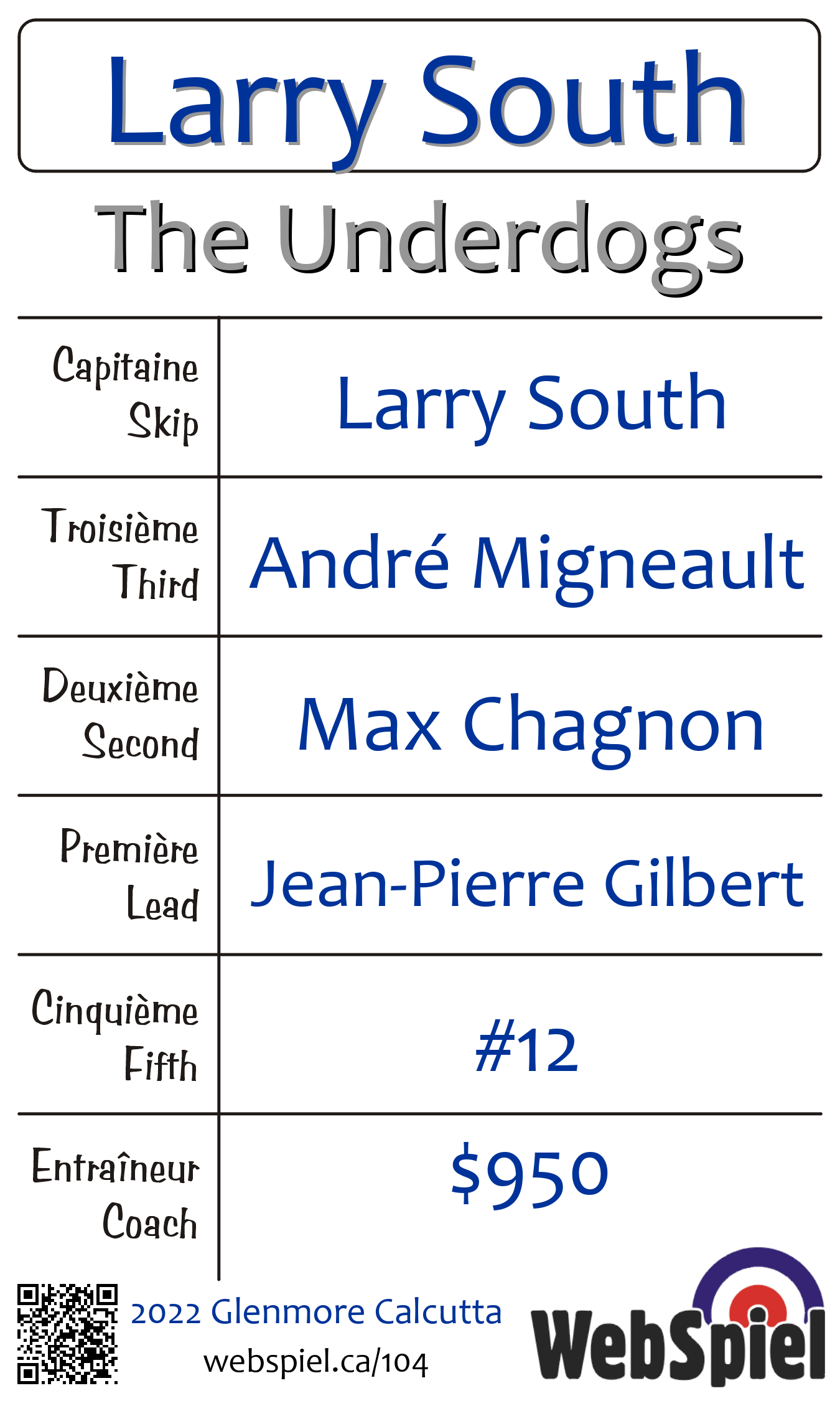 | Équipe | 10 - Larry South |