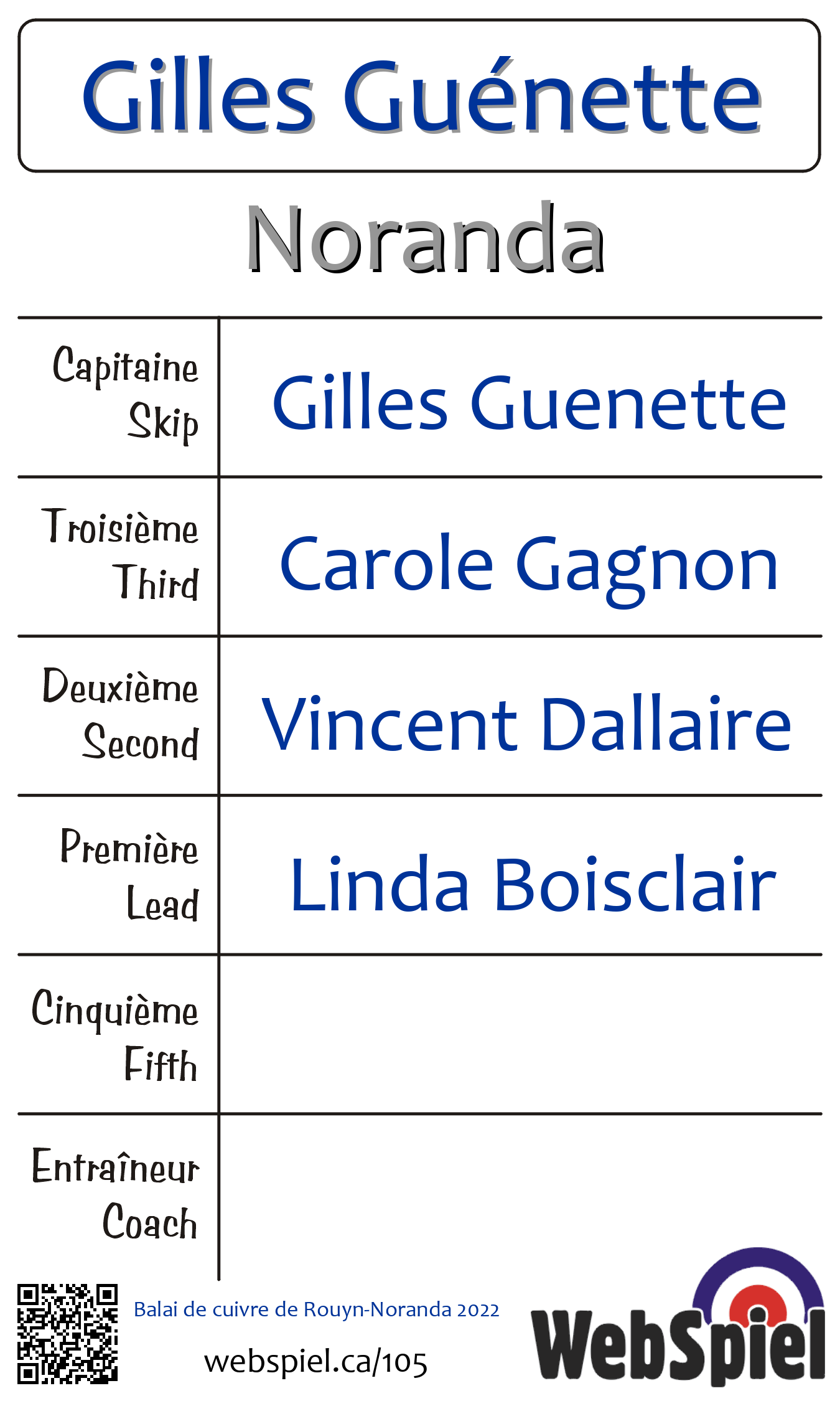 Club de curling Noranda, Glace 6 · F, Gagnant › C12, Perdant › D04