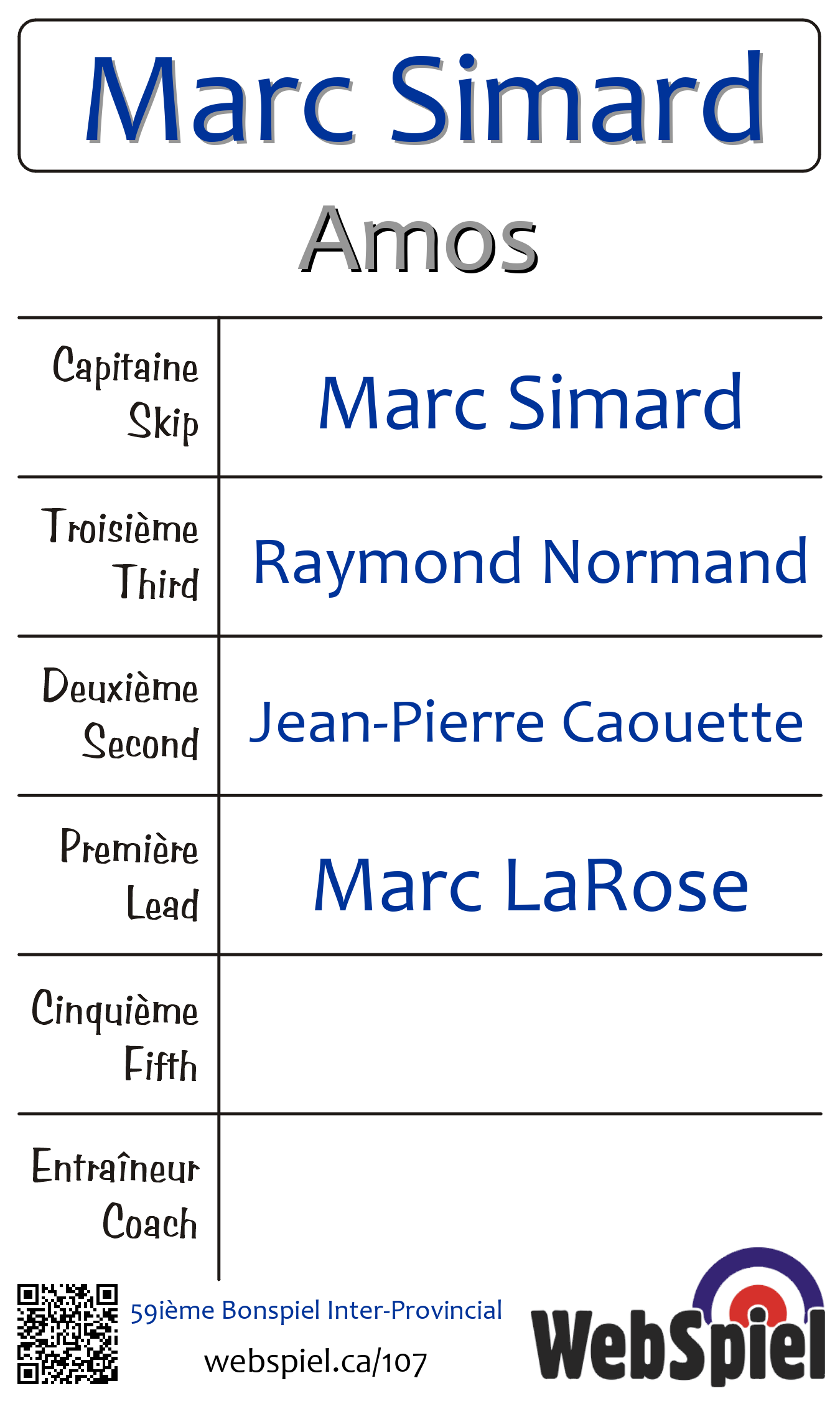 | Club | Amos Club de curling d'Amos 182 10e Avenue Est Amos, QC J9T 1H9 CANADA T: 819-732-6272 F: 819-732-1617 http://www.clubcurlingamos.com |