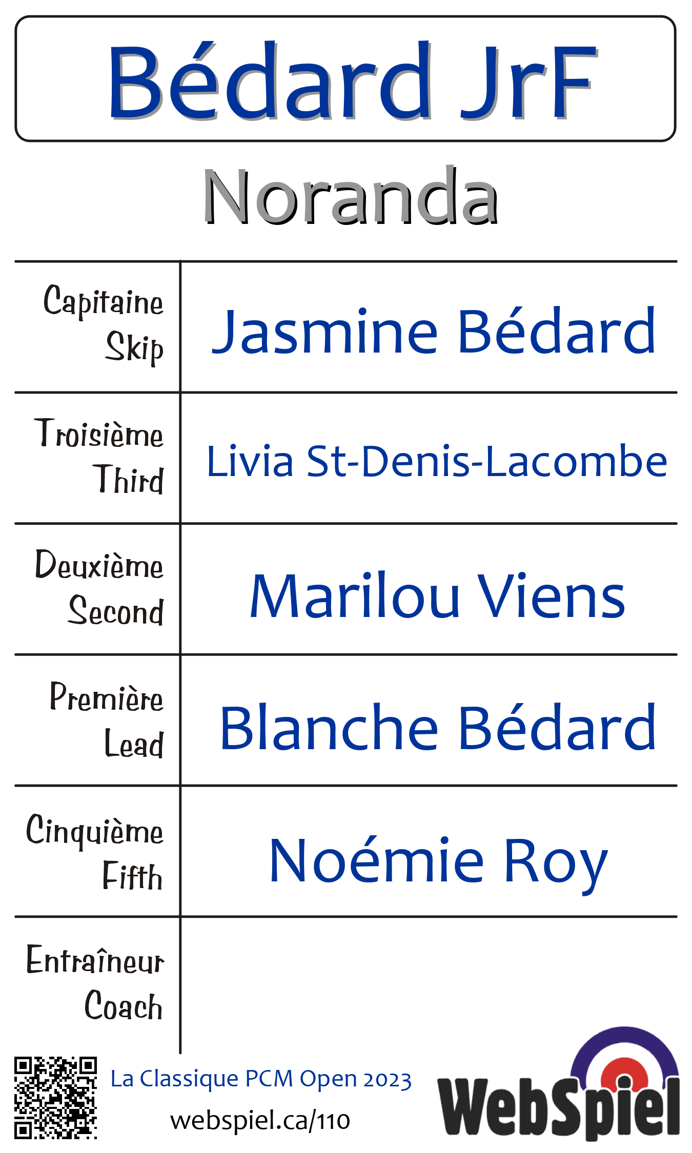 Complété. Classique Partenariat Canadian Malartic 2023 (open) · Draw D02