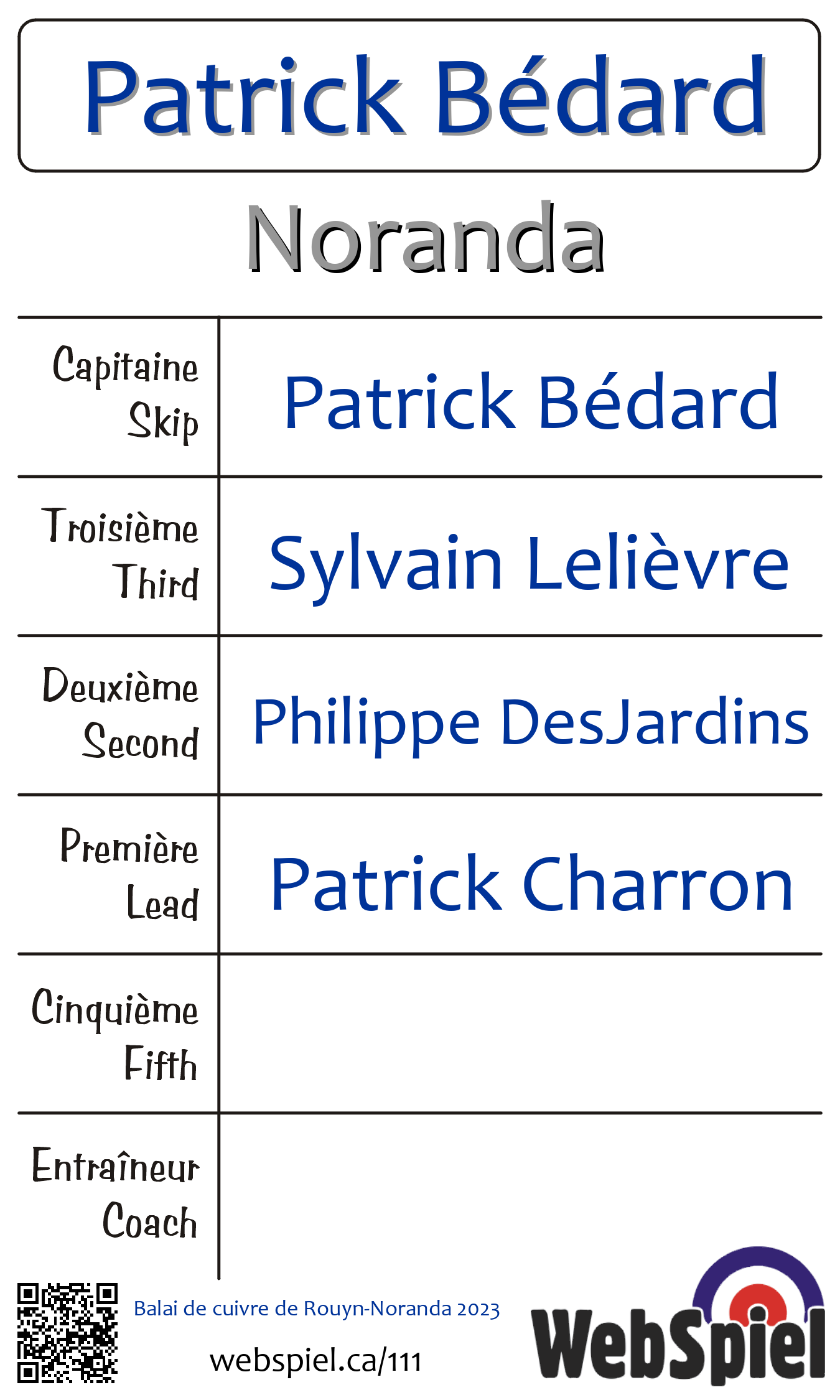 Club de curling Noranda, Québec » 2023-03-03 à 2023-03-05