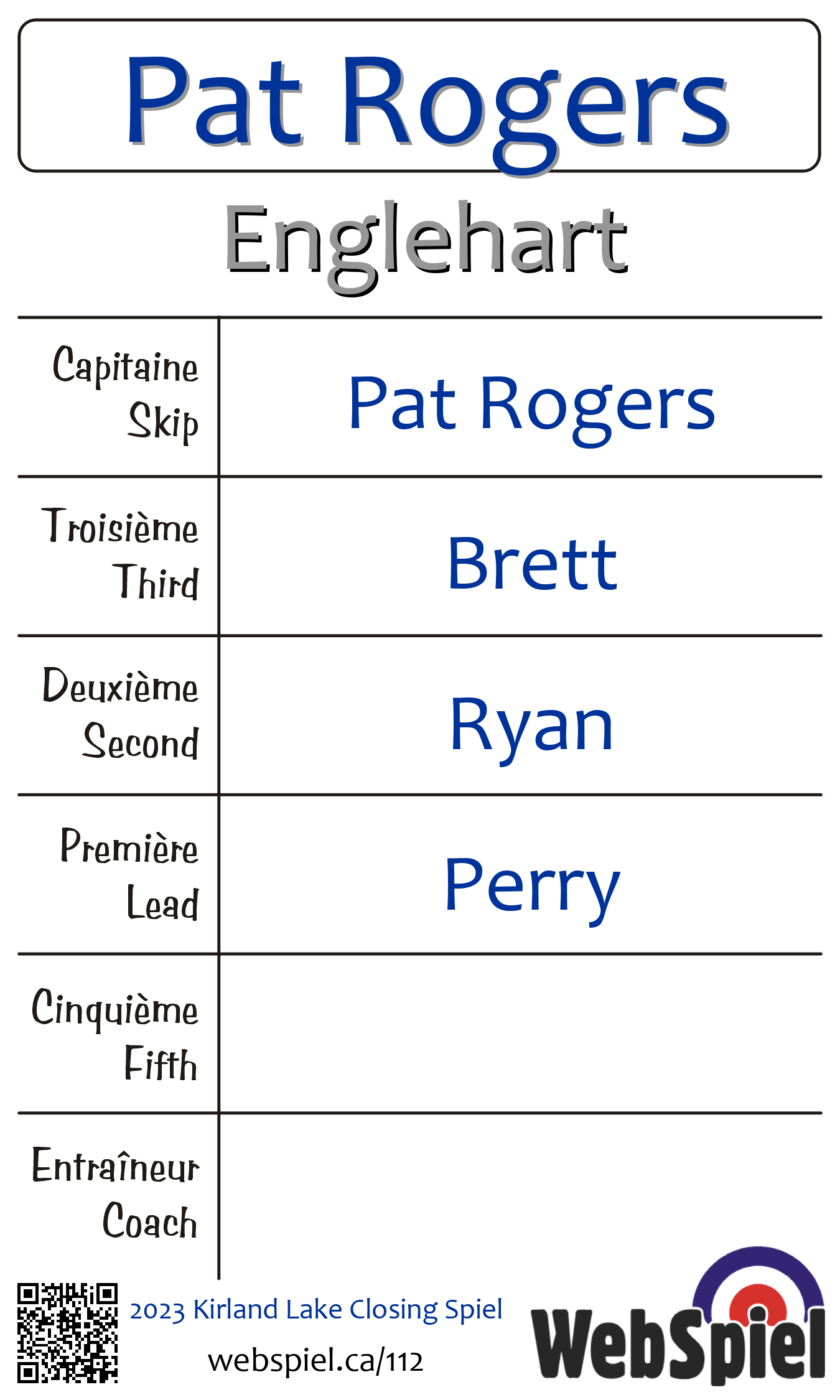 Complété. 2023 Kirkland Lake Closing Spiel · Draw A22