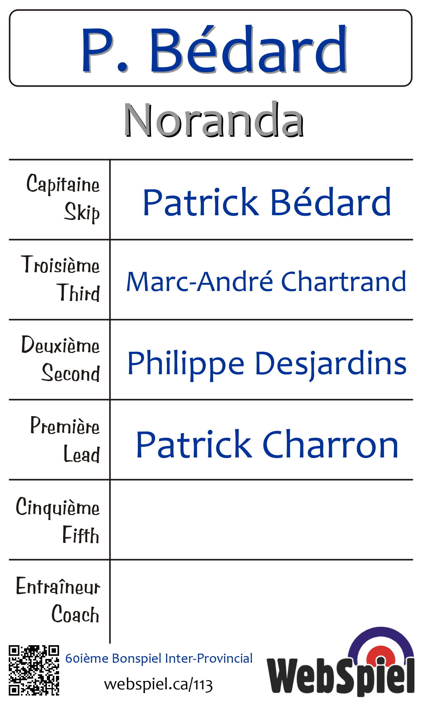 | Équipe | 7 - P. Bédard |