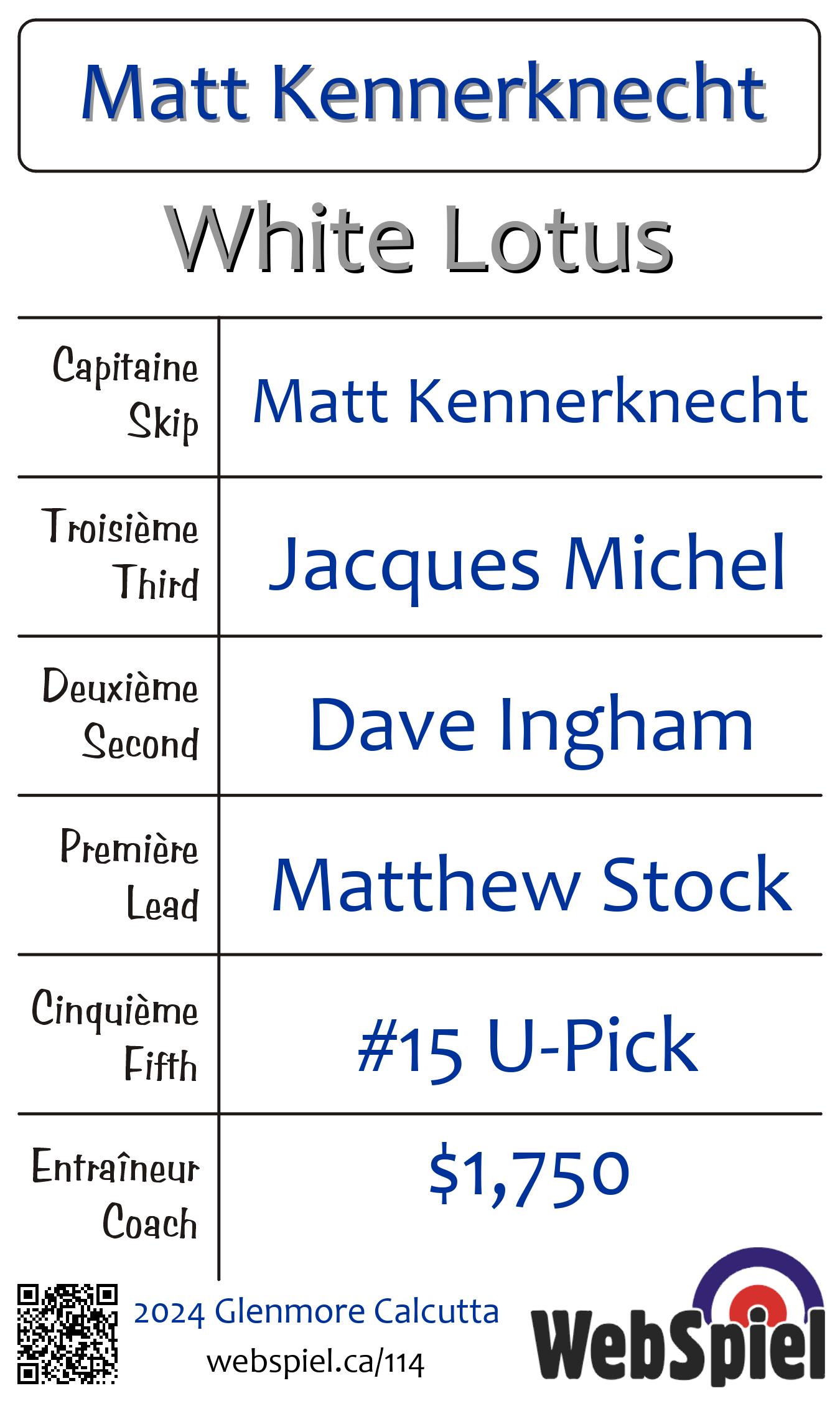 Complété. 2024 Glenmore Calcutta · Draw A14