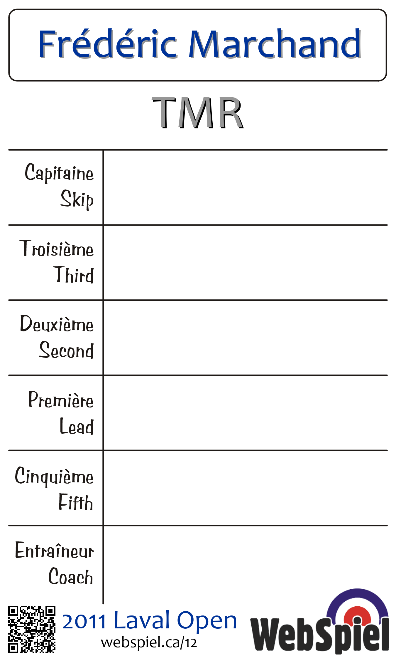 Complété. Laval Open 2011 · Draw A13