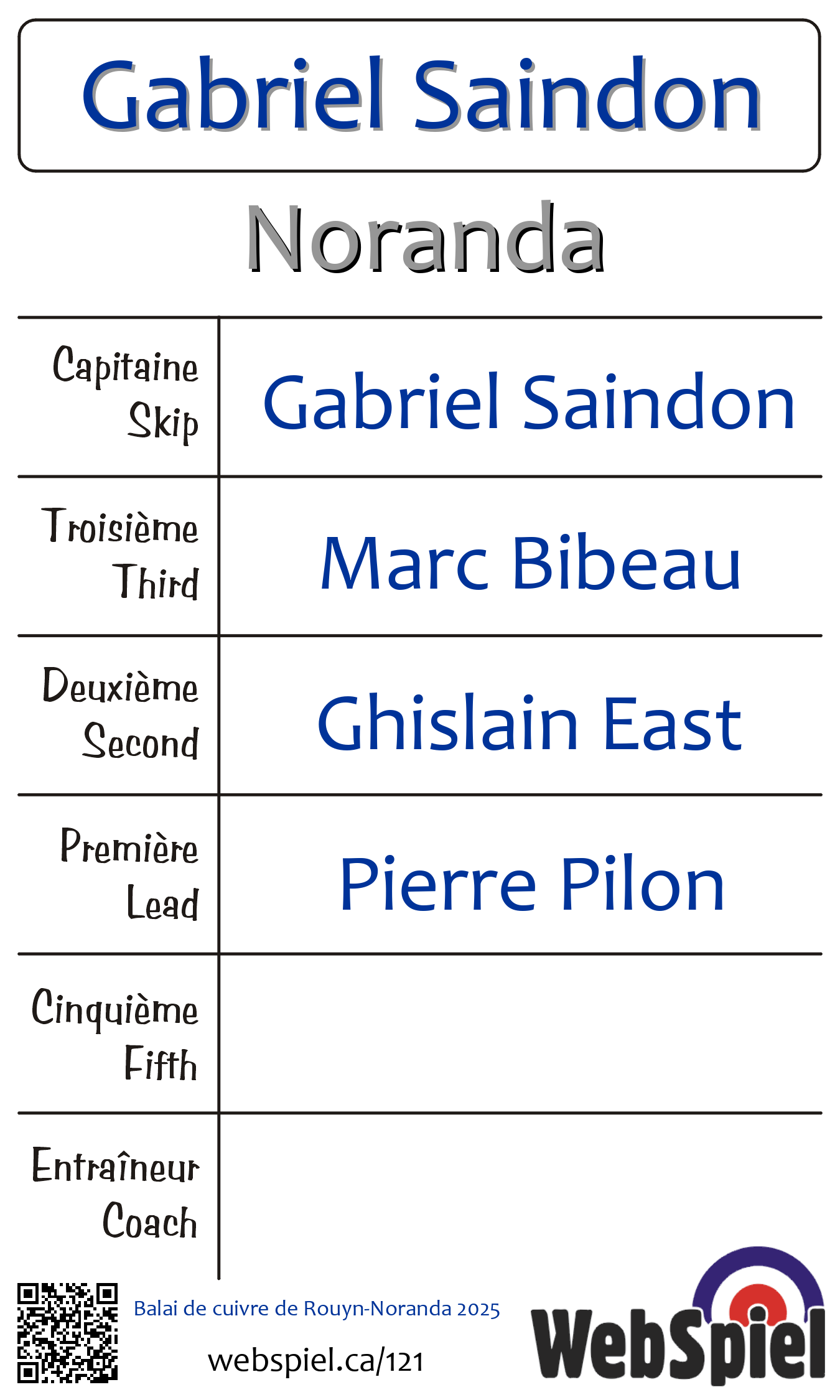 | Club | Noranda Club de curling Noranda 218 av. Murdoch Rouyn-Noranda, QC J9X 1E6 CANADA T: 819-762-7365 http://www.curlingnoranda.ca/ 6 glaces |