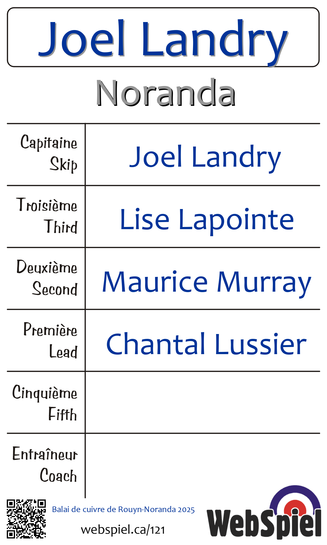 | Équipe | 34 - Joel Landry |