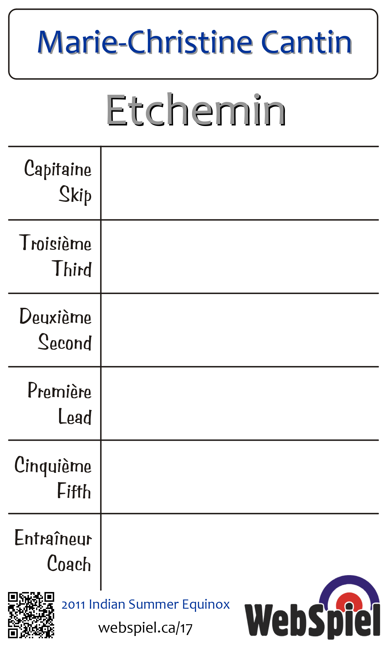 | Équipe | 8 - Marie-Christine Cantin |