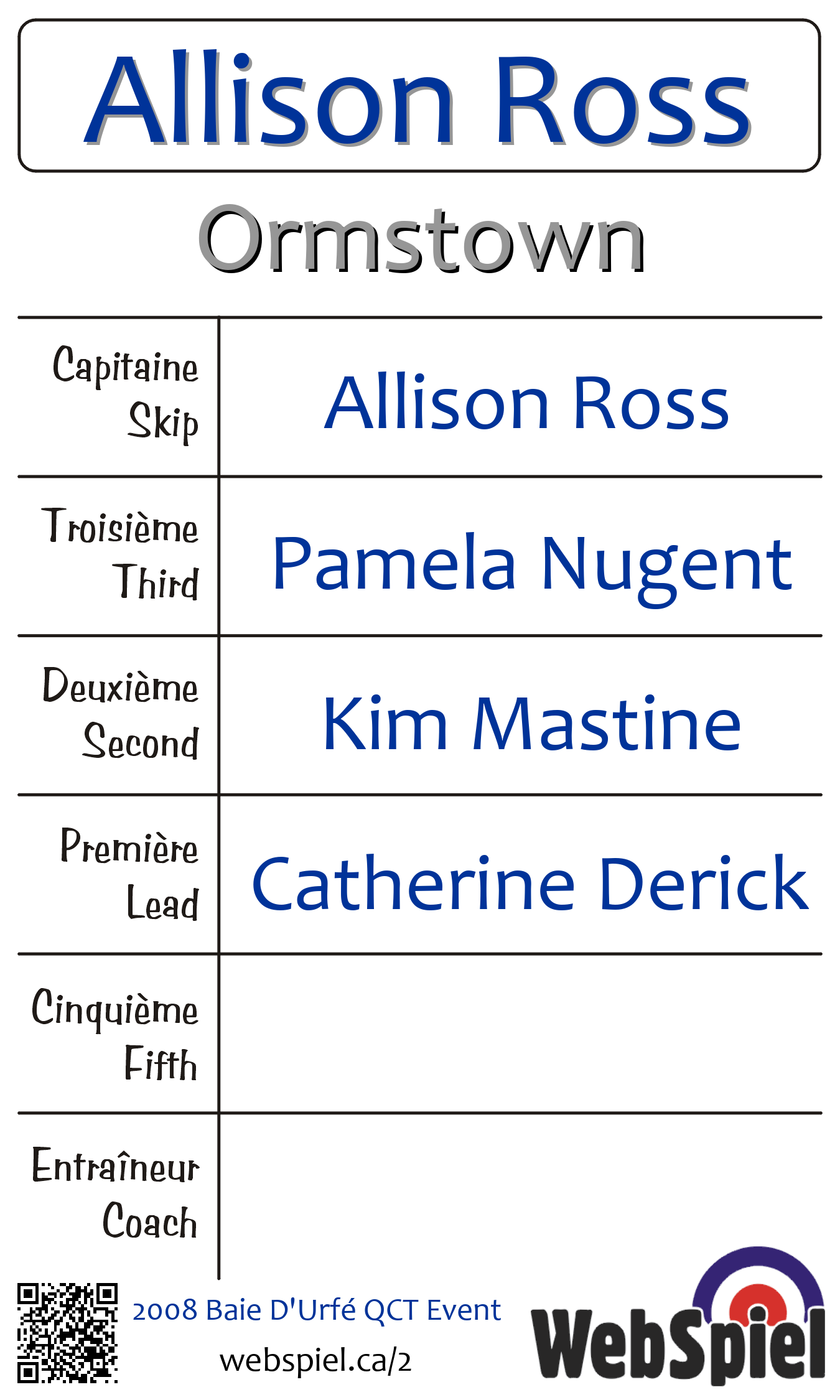 | Équipe | 15 - Allison Ross |
