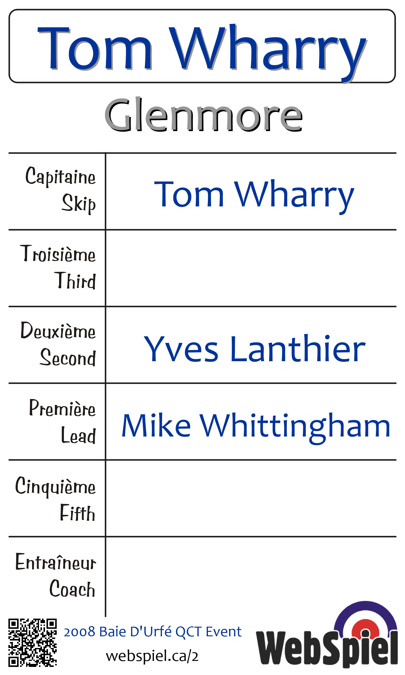 Baie d'Urfé Curling Club, Glace 193, Gagnant › B15, Perdant › Éliminé