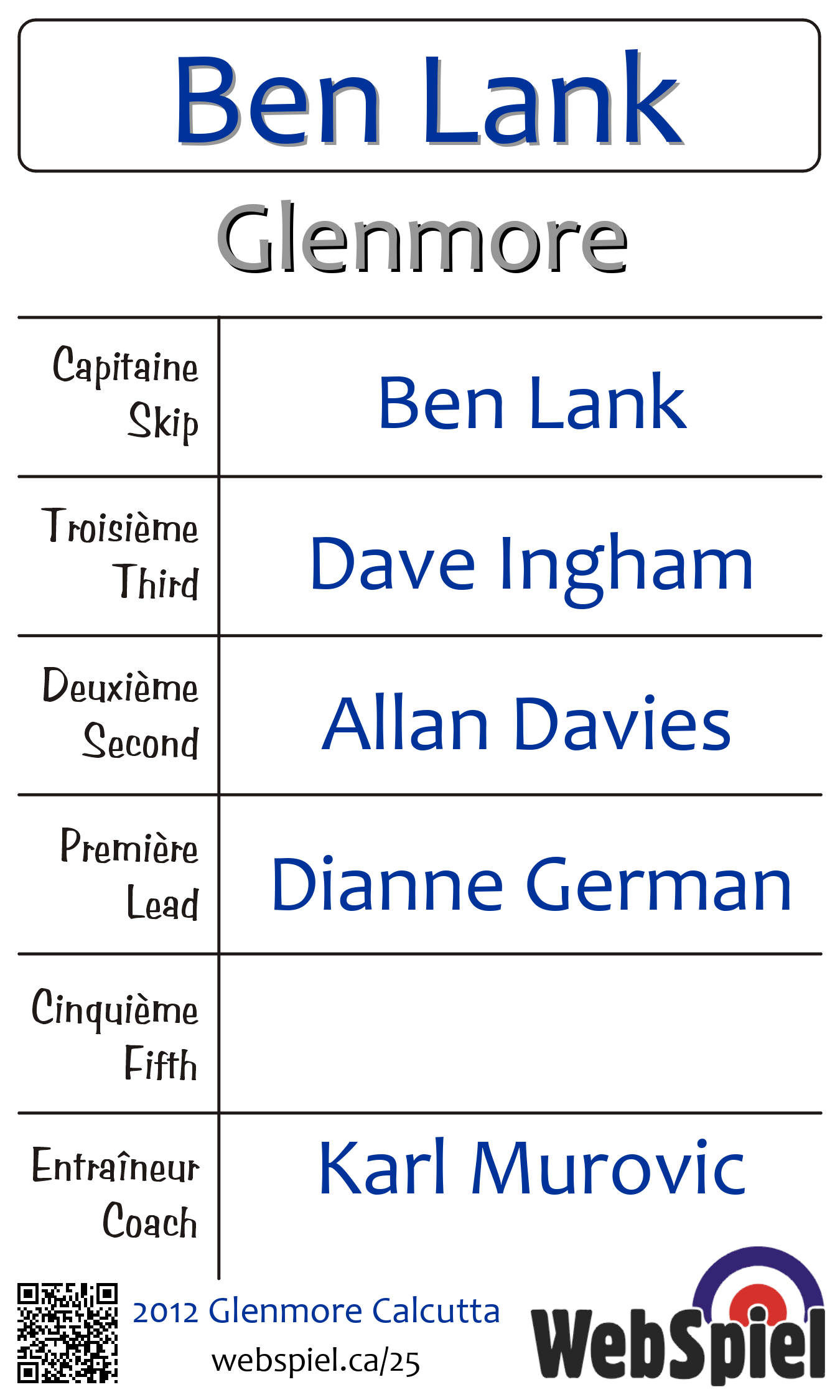 Mardi le 7 février 2012, à 21h00 EST Glenmore Curling Club, Glace 212, Gagnant › A10, Perdant › B02 | ||||||||||