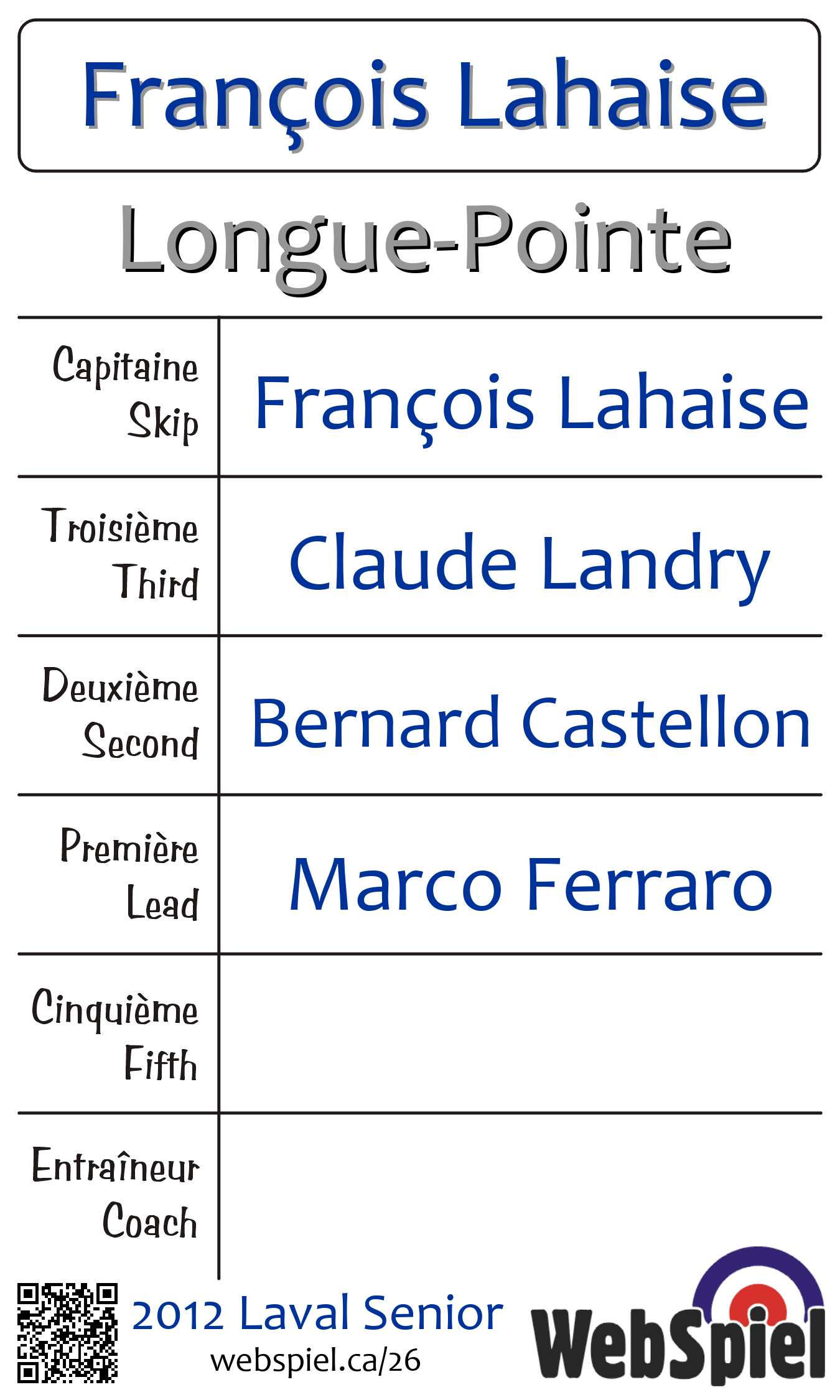 Complété. Laval Senior 2012 · Draw B06