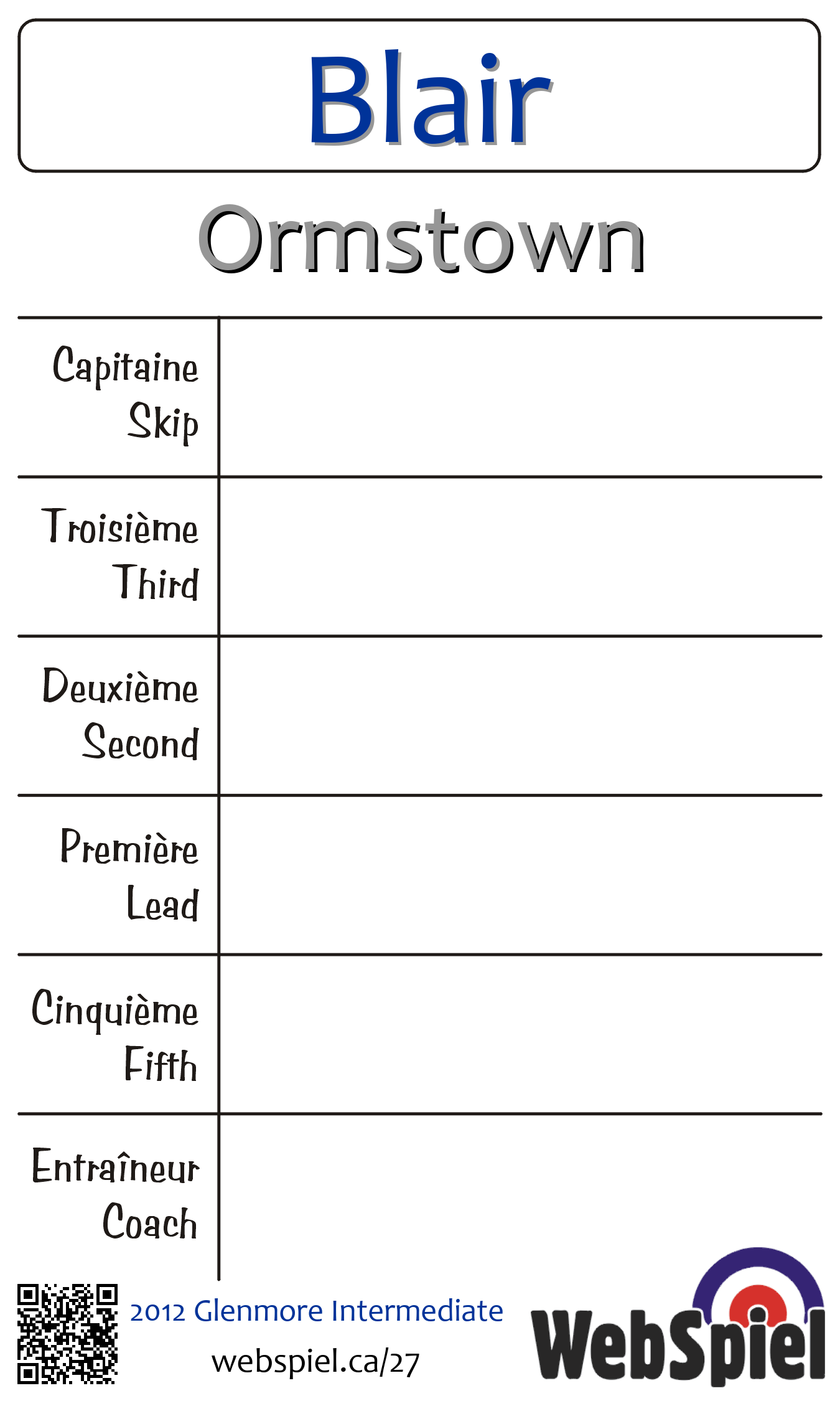 Complété. Intermediaire Glenmore 2012 · Draw A27