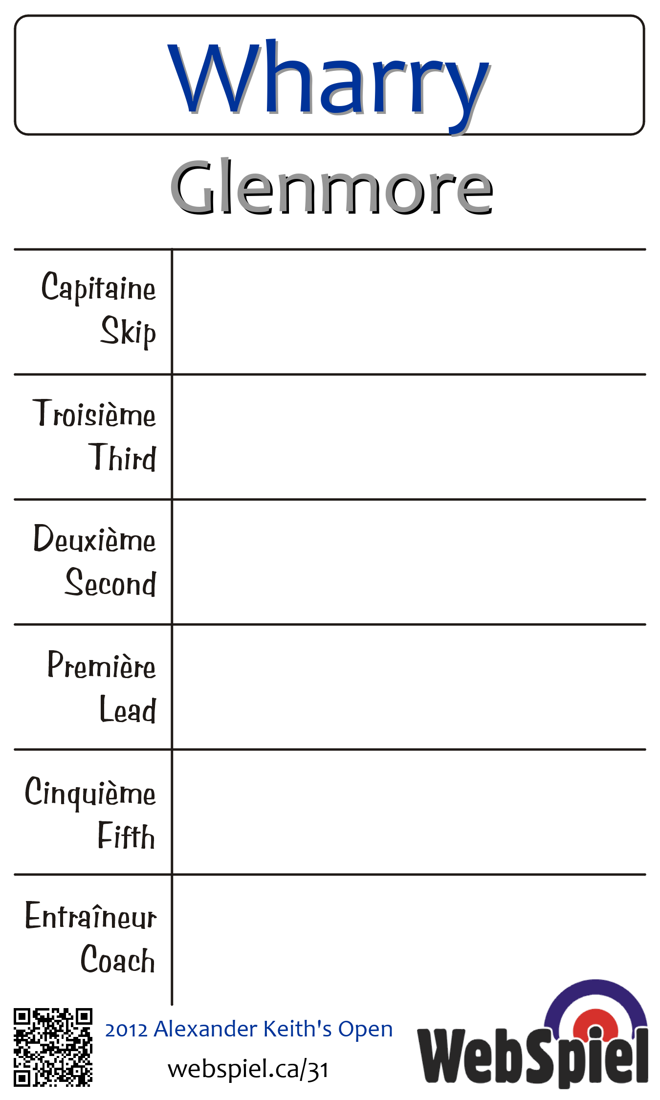 Vendredi le 30 novembre 2012, à 22h00 EST Baie d'Urfé Curling Club, Glace 192 | |||||||||