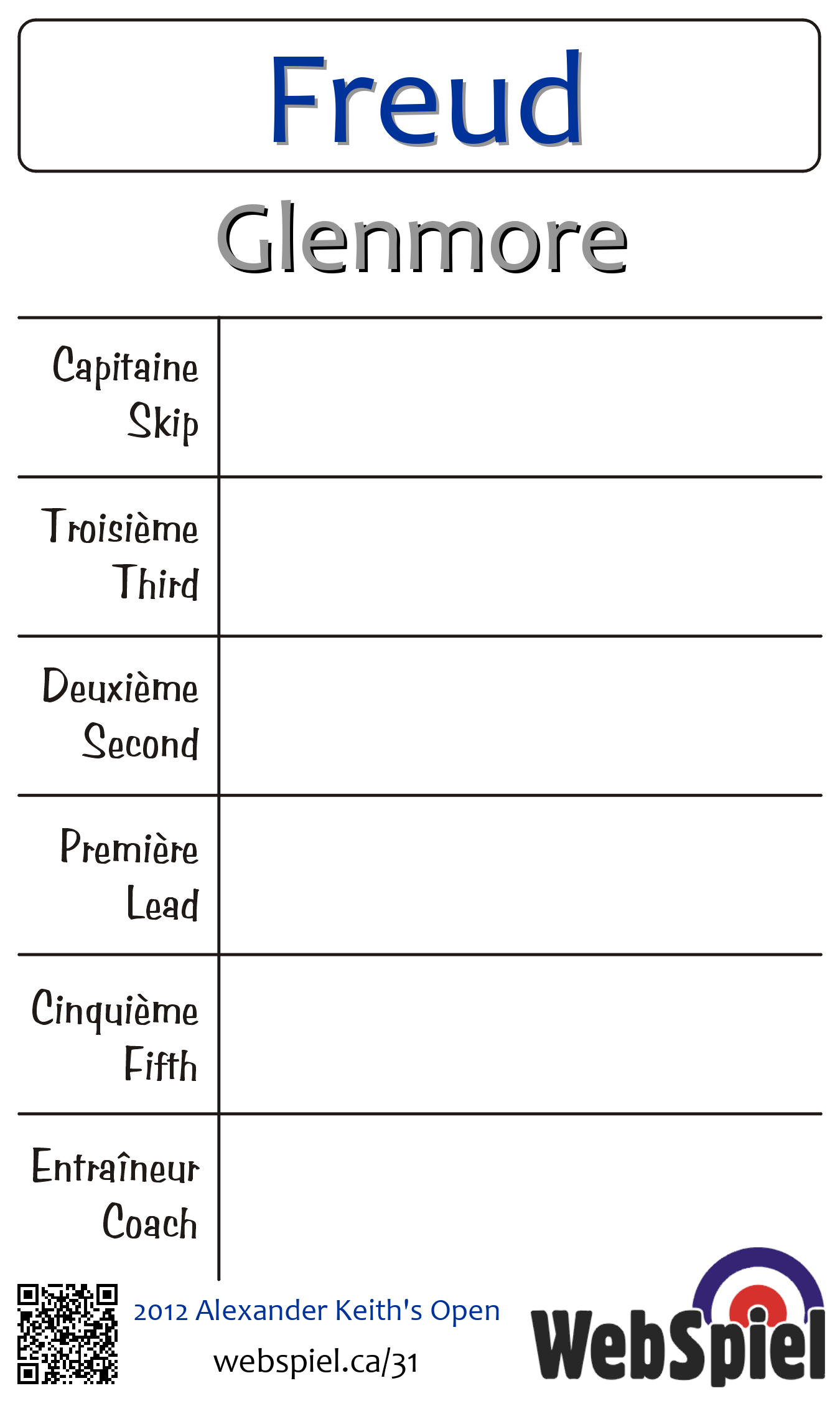 Complété. 2012 Alexander Keith's Open · Draw O23