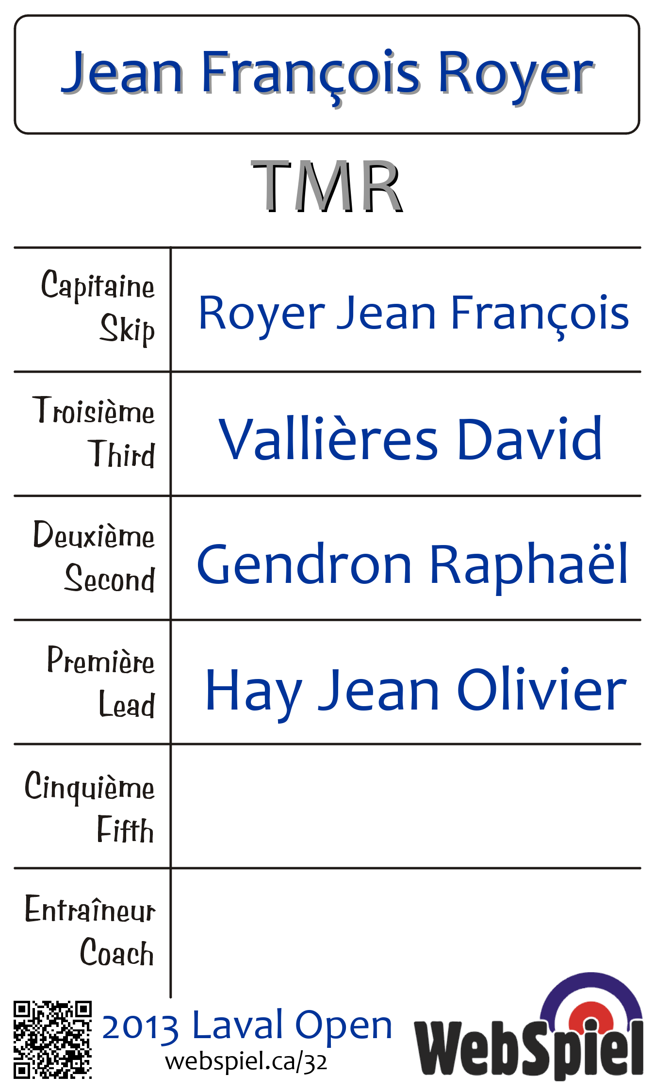 Club de curling Laval-sur-le-Lac, Glace 302, Gagnant › A14, Perdant › B03
