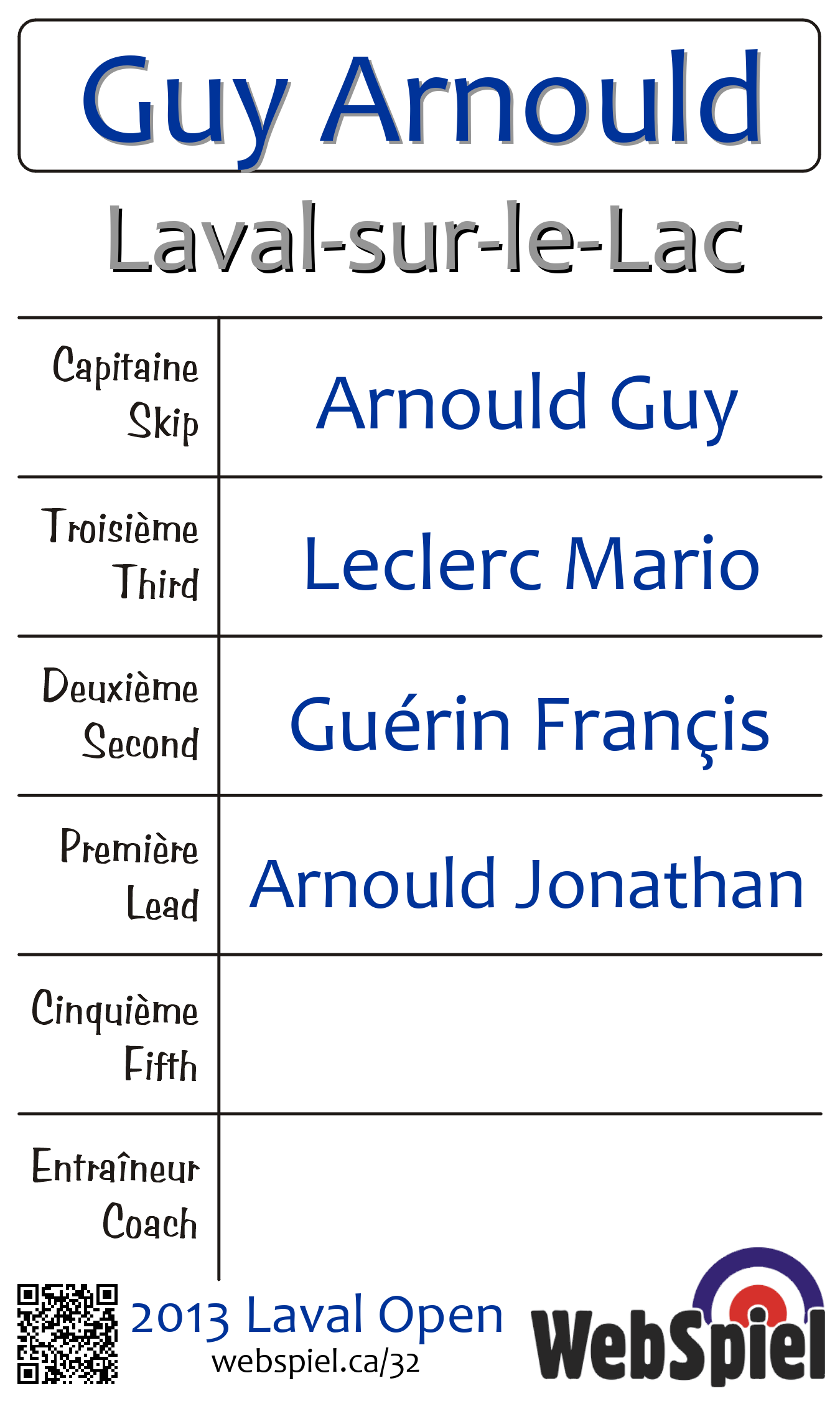 | Club | Laval-sur-le-Lac Club de curling Laval-sur-le-Lac 10 rue les Pins Laval-sur-le-Lac, QC H7R 1C7 CANADA T: 450-627-4791 F: 450-627-7511 http://www.curlinglaval.ca 3 glaces |