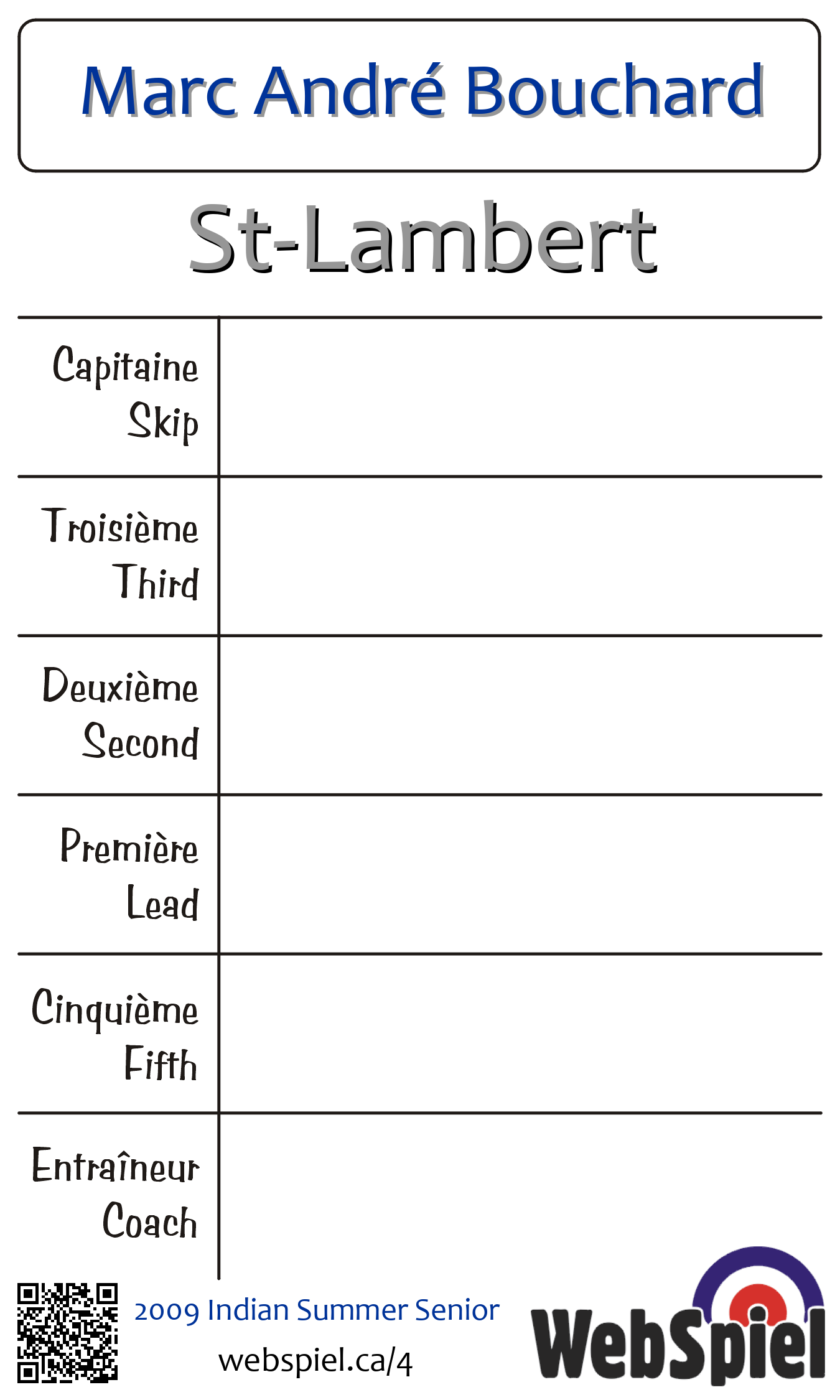 C FINALDimanche le 11 octobre 2009, à 13h30 EDT Glenmore Curling Club, Glace 211 | |||||||||