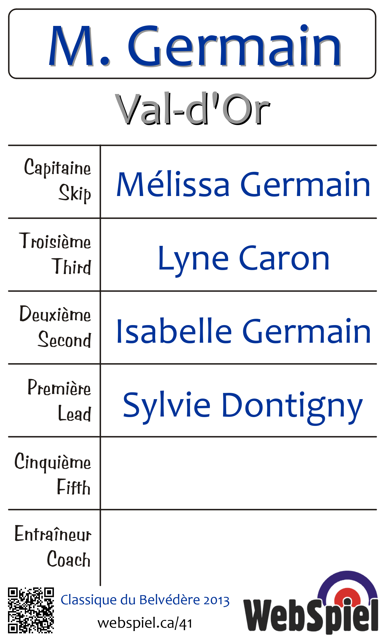 Mardi le 5 février 2013, à 19h00 EST Club de curling du Belvédère, Glace 2 · B | |||||||||