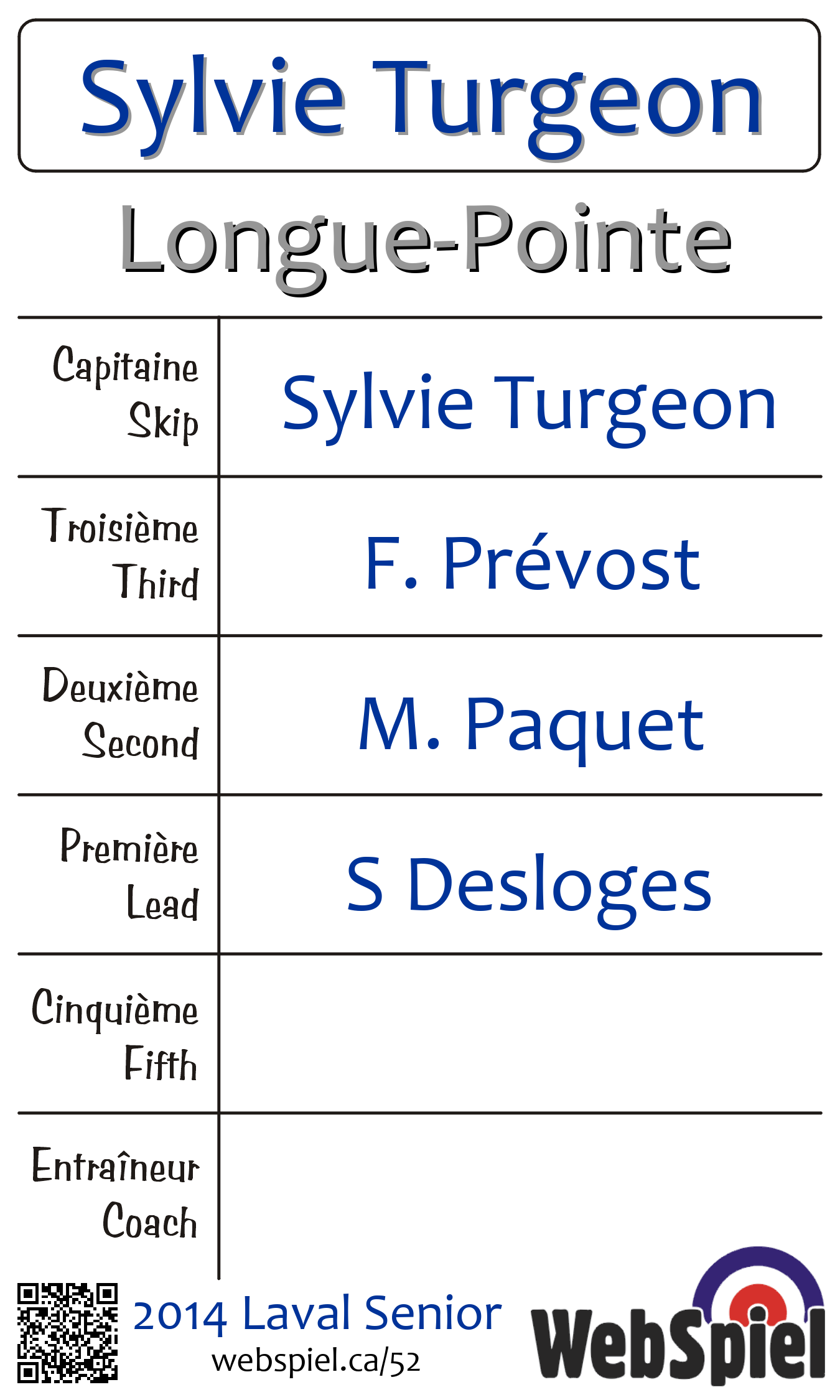 | Équipe | 6 - Sylvie Turgeon |