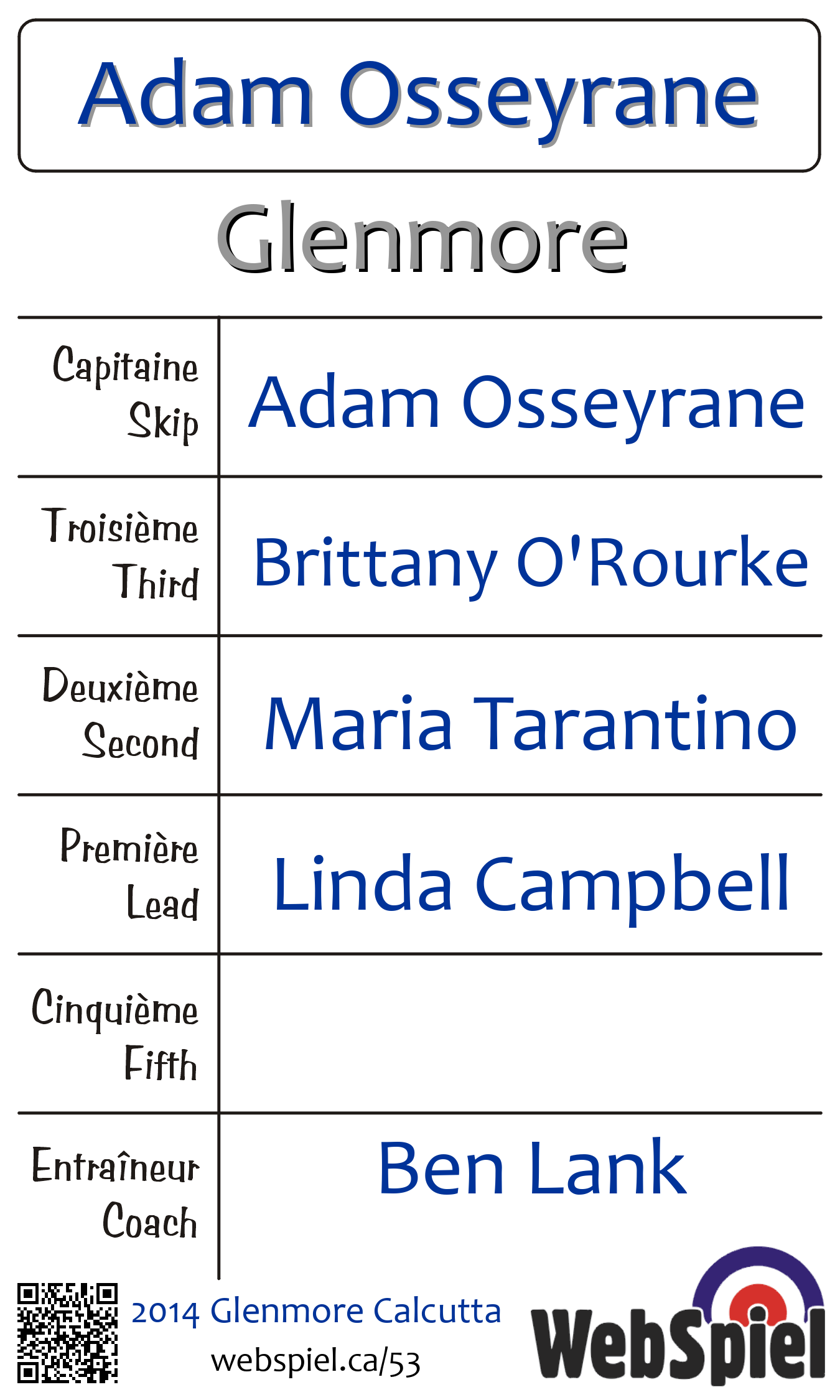 Lundi le 24 février 2014, à 19h00 EST Glenmore Curling Club, Glace 214, Gagnant › A12, Perdant › B04 | |||||||||