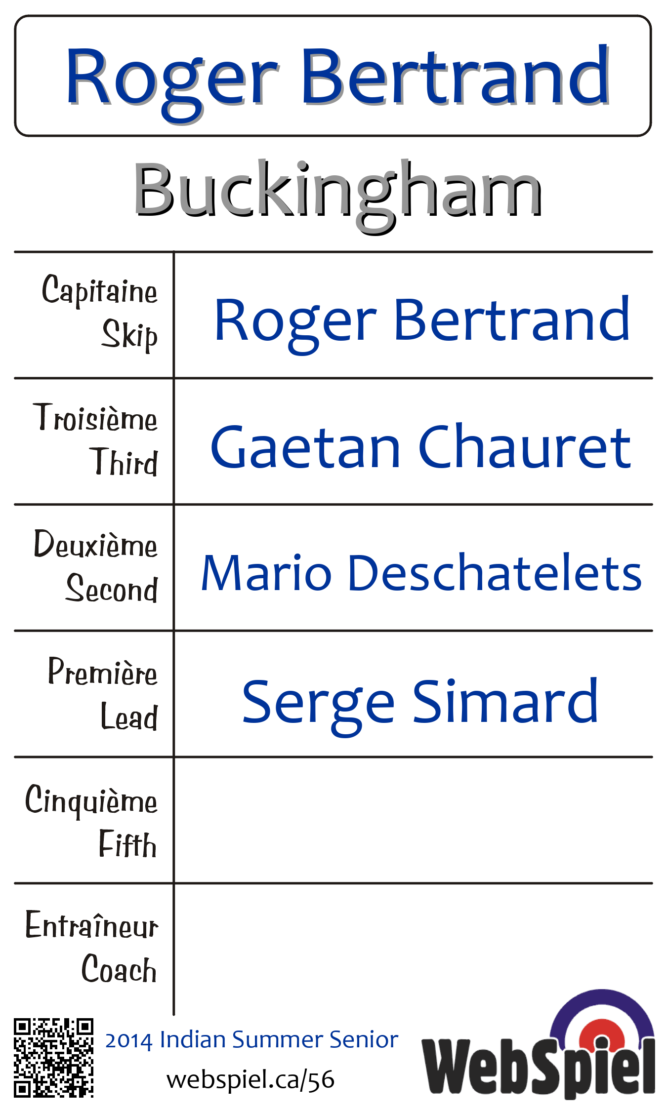 | Club | Buckingham Club de curling Buckingham C.P. 133 Buckingham, QC J8L 2X2 CANADA T: 819-986-3781 http://www.buckingham.ovca.com |