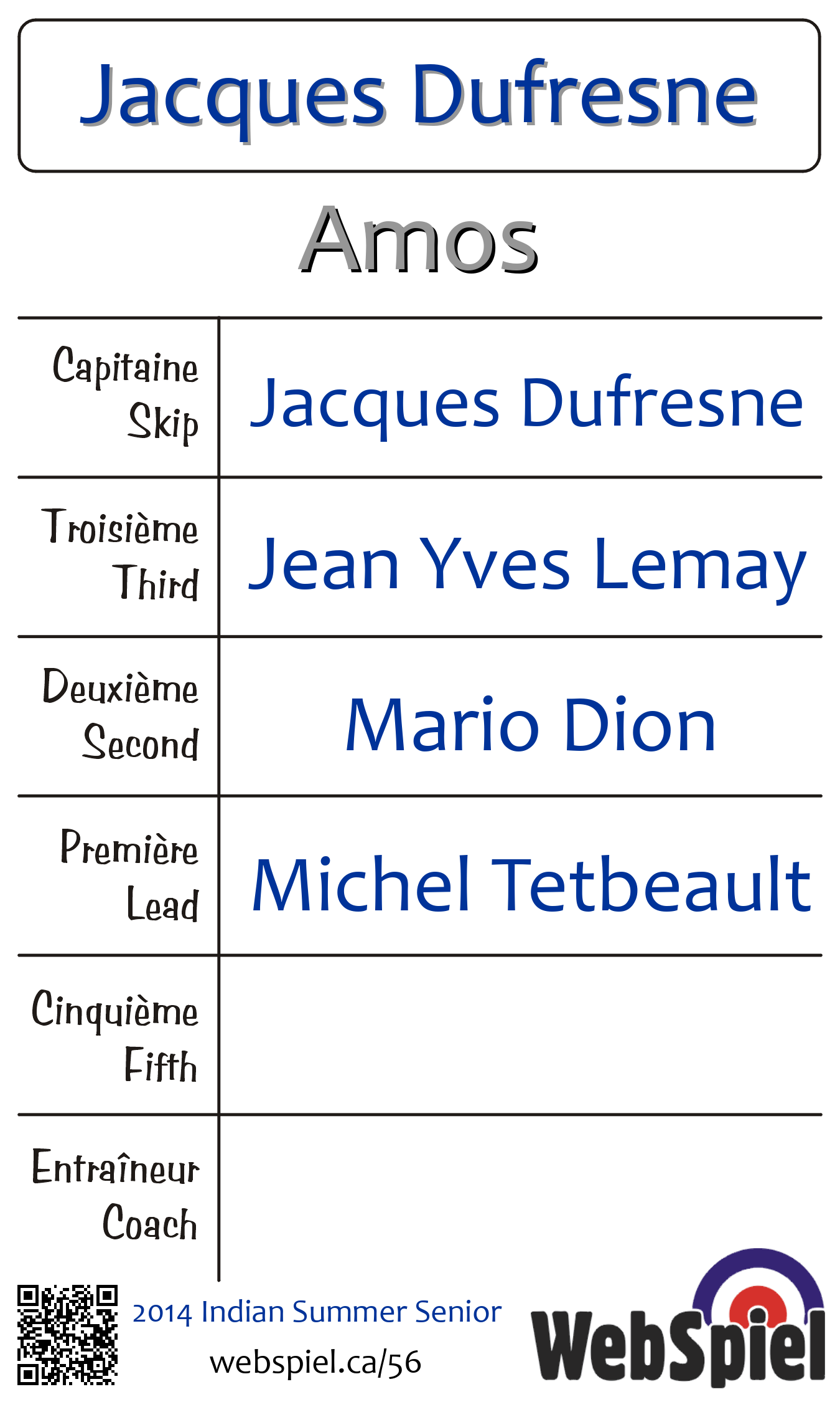 Complété. L'Été des indiens senior 2014 · Draw A11