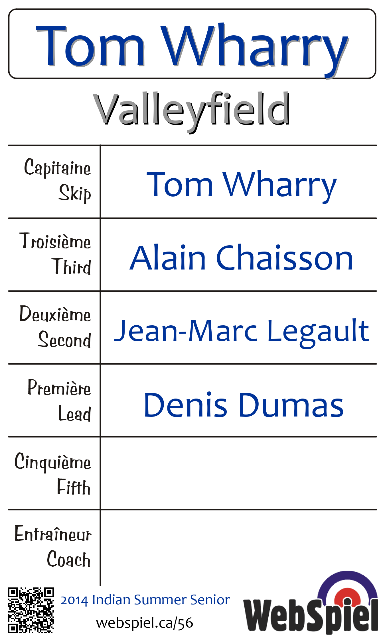 | Club | Valleyfield Club de curling Valleyfield 19 rue Maden Valleyfield, QC J6S 3V1 CANADA T: 450-373-7441 F: 450-373-9732 http://www.curlingvalleyfield.com/ |