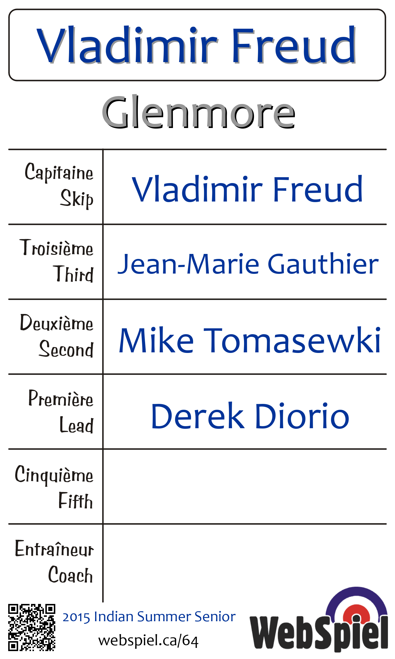 QualificateurSamedi le 10 octobre 2015, à 20h00 EDT Glenmore Curling Club, Glace 213, Perdant › Éliminé | |||||||||
