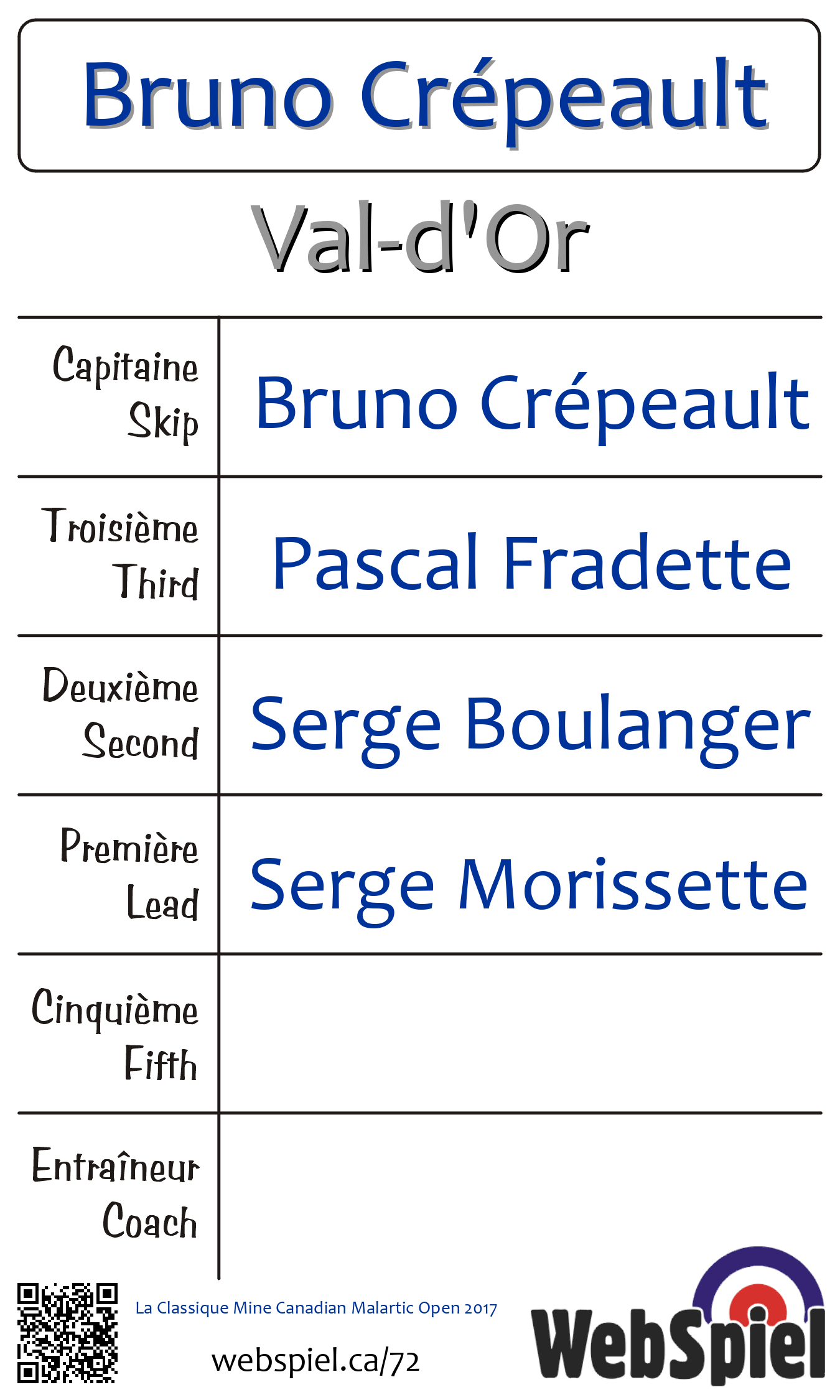Complété. La Classique Mine Canadian Malartic Ouvert 2017 · Draw B03