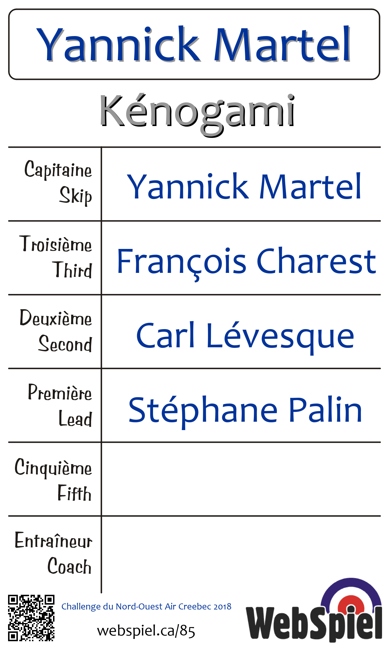 Vendredi le 2 novembre 2018, à 19h30 EDT Club de curling Noranda, Glace 3 · C | |||||||||