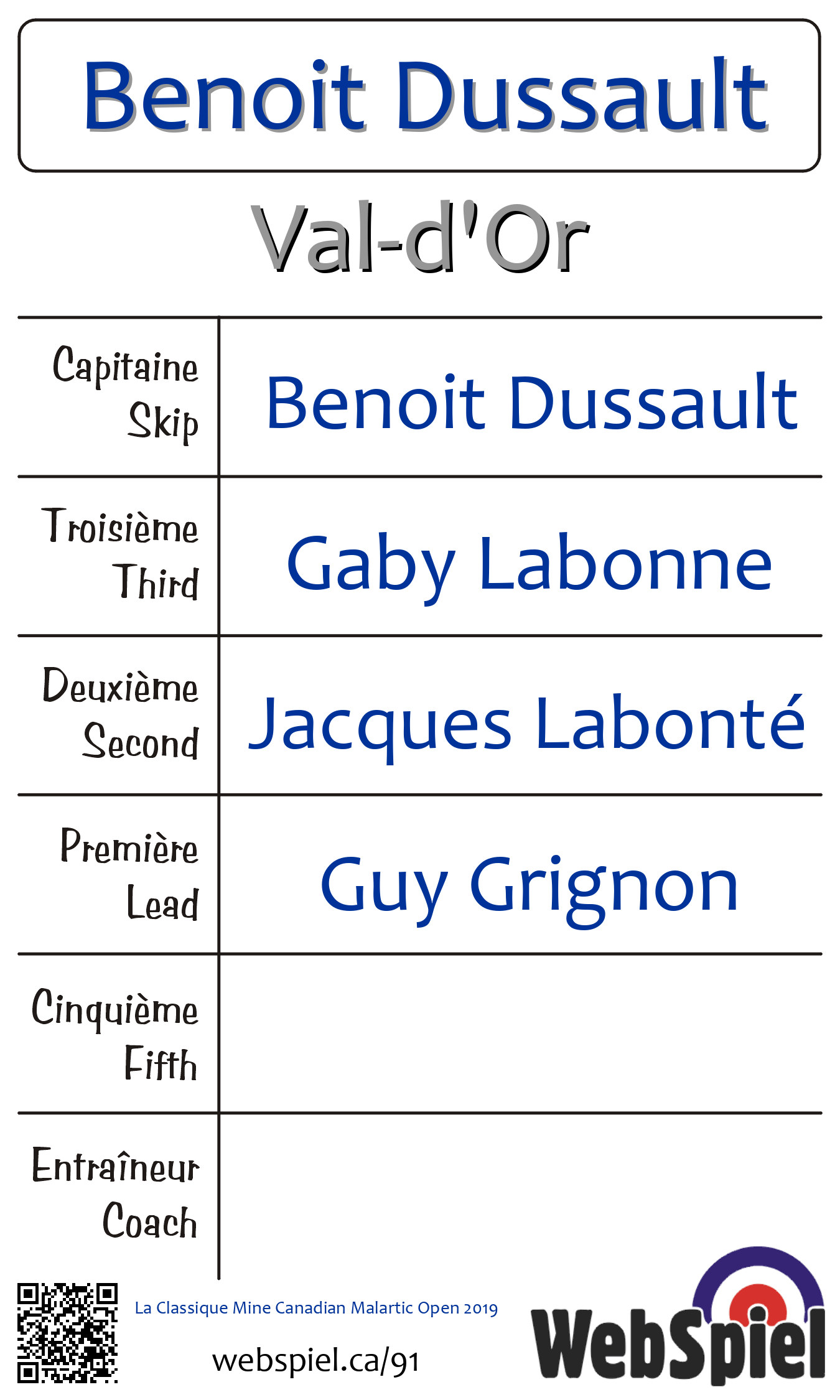 Dimanche le 17 février 2019, à 8h00 EST Club de curling du Belvédère, Glace 4 · D, Gagnant › B06, Perdant › Éliminé | |||||||||