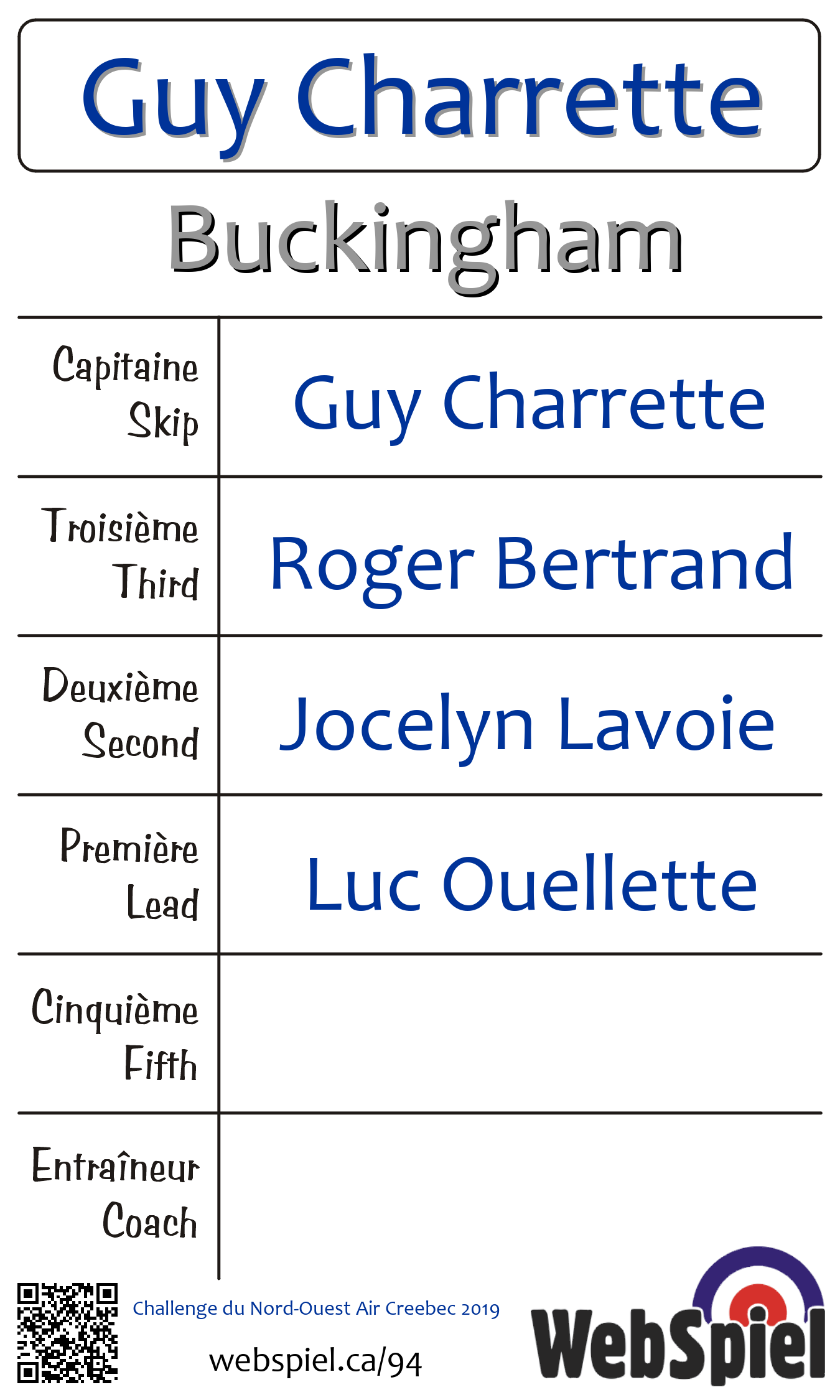 | Club | Buckingham Club de curling Buckingham C.P. 133 Buckingham, QC J8L 2X2 CANADA T: 819-986-3781 http://www.buckingham.ovca.com |