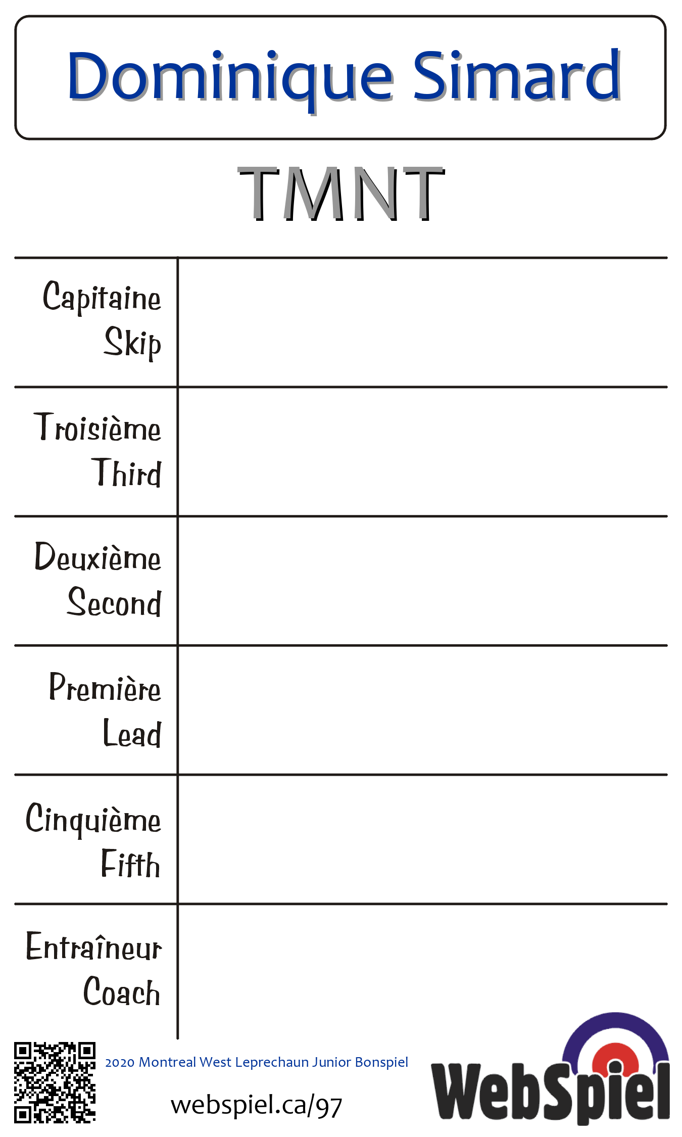 Samedi le 25 janvier 2020, à 11h00 EST Montreal West Curling Club, Glace 74 | |||||||||