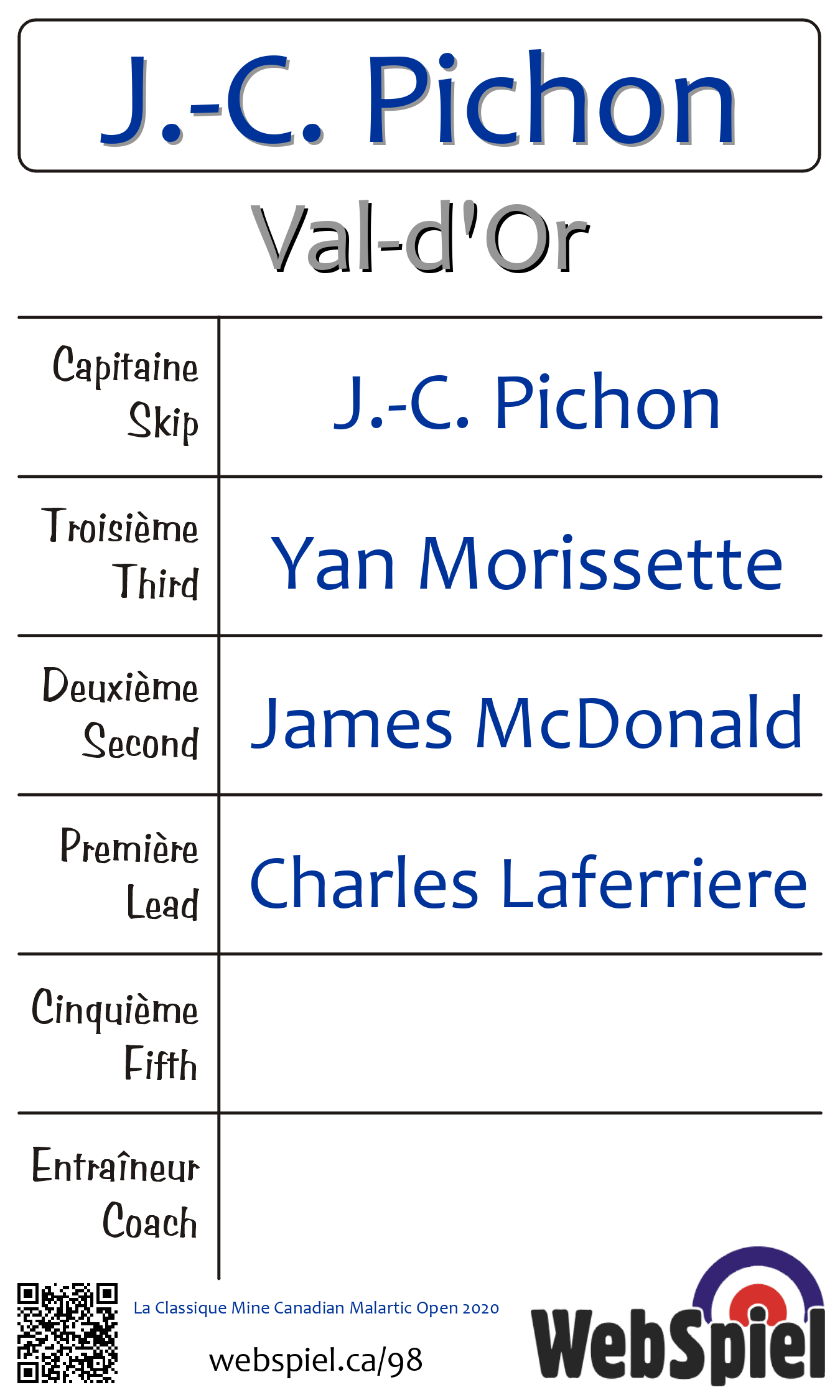 Complété. La Classique Mine Canadian Malartic Ouvert 2020 · Draw B07